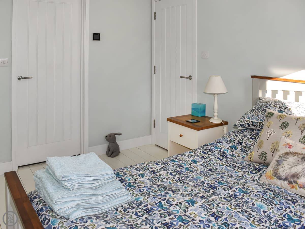 For facilities: there’s parking on the gravel drive. WiFi and a TV. Washing machine. Bedding and towels are included. The garden is enclosed. No pets.