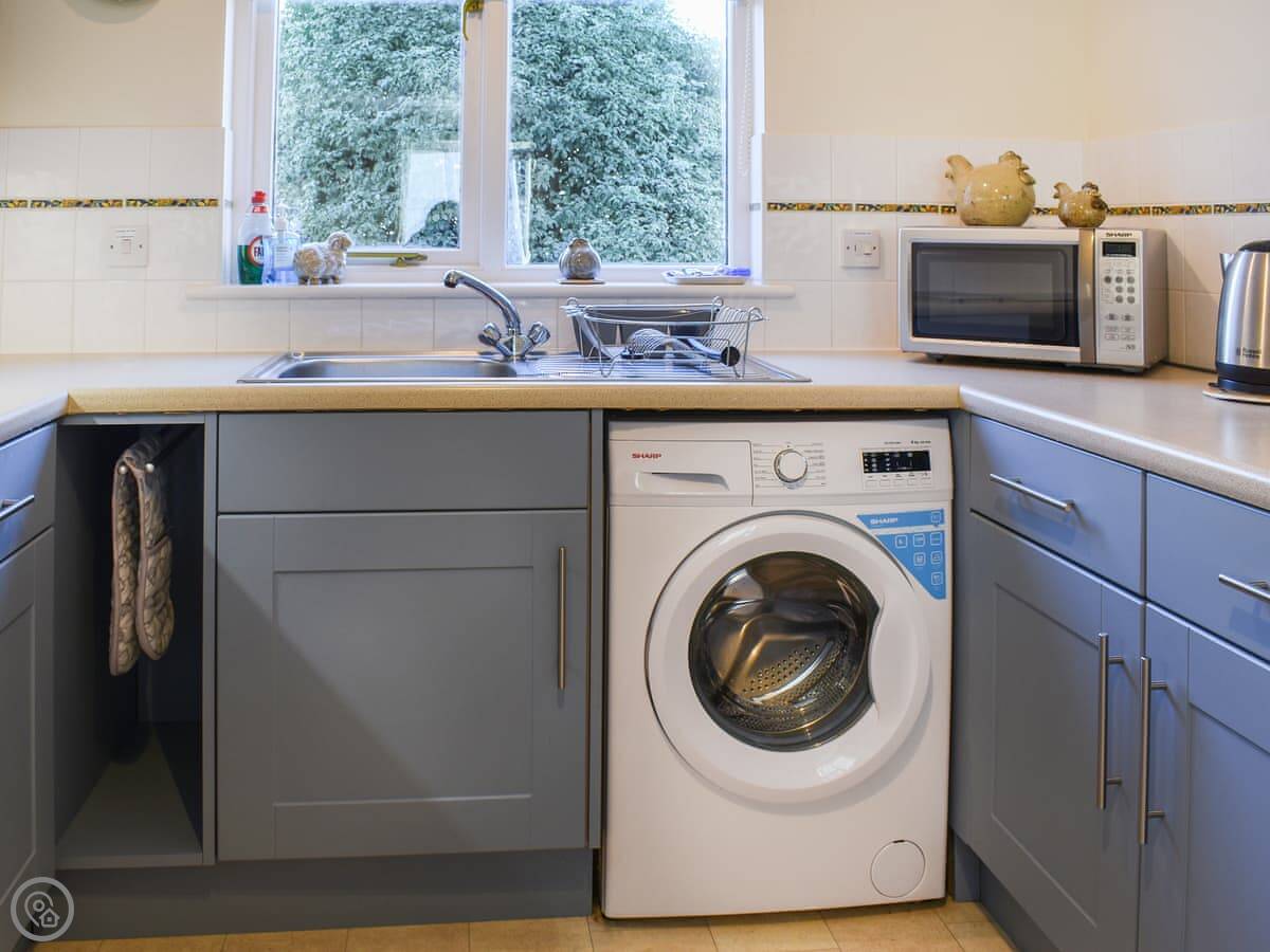 In terms of what's here: the kitchen has a dishwasher, there's a washing machine, WiFi, TV, and parking right outside. There's an electric vehicle charger on site. Bedding and towels are included. We can provide a highchair if needed. No pets, sorry.
