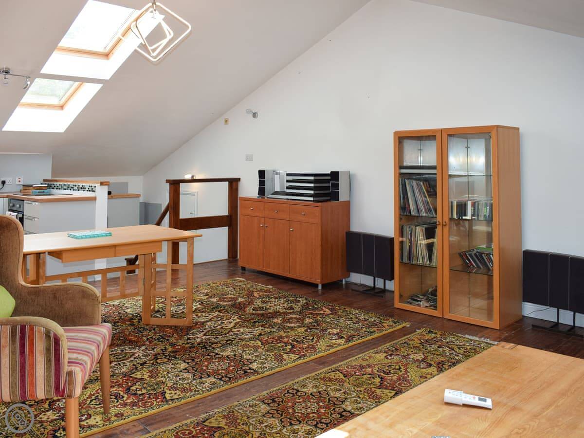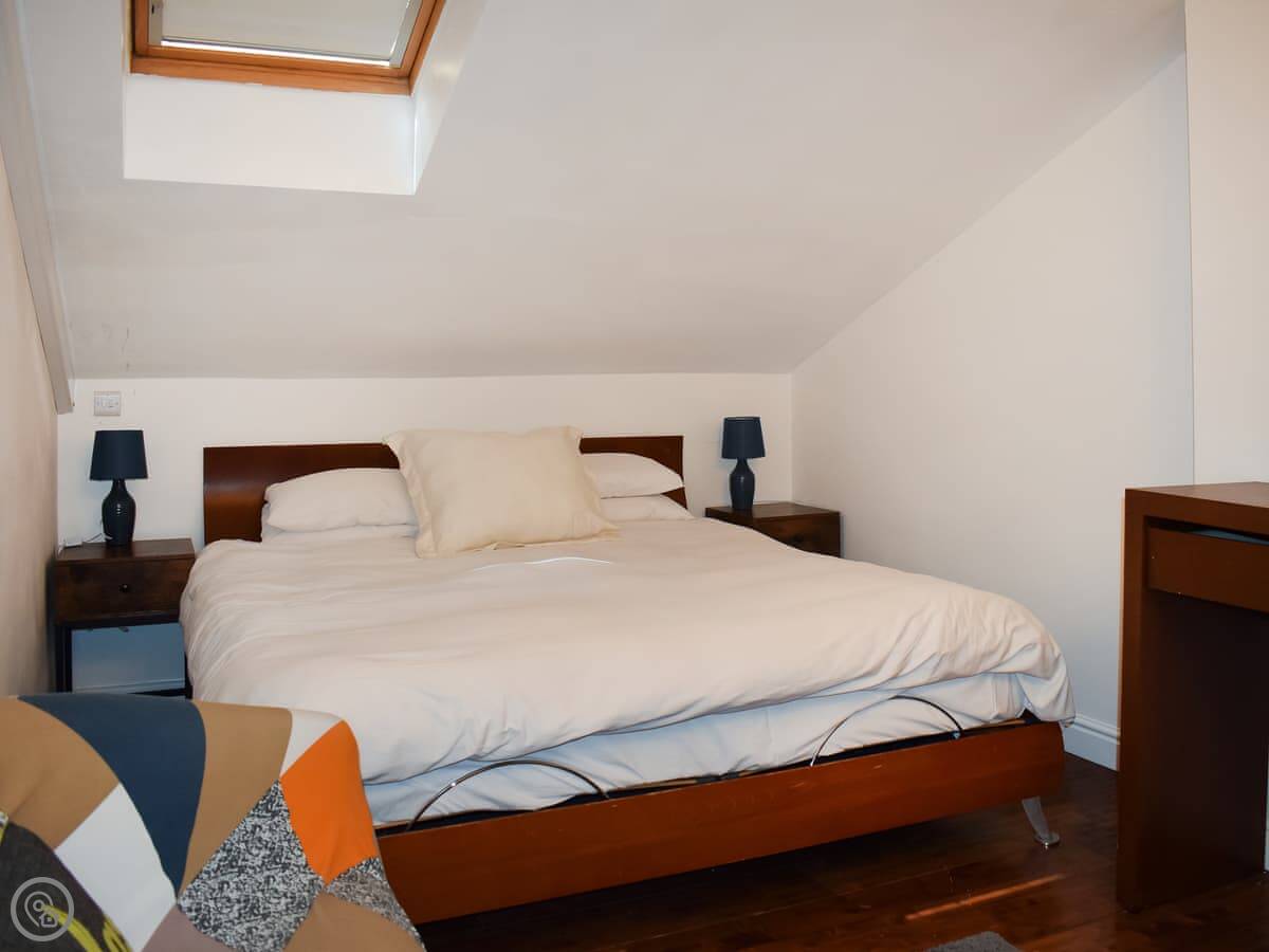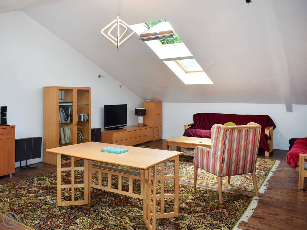 It sleeps two in the main bedroom, but there are two double sofa beds in the living area as well. So you could have more people, but it's really best for a couple. It's got a 4 Star rating. It's modern inside, but it’s still a barn so the ceilings are high and the space feels open.