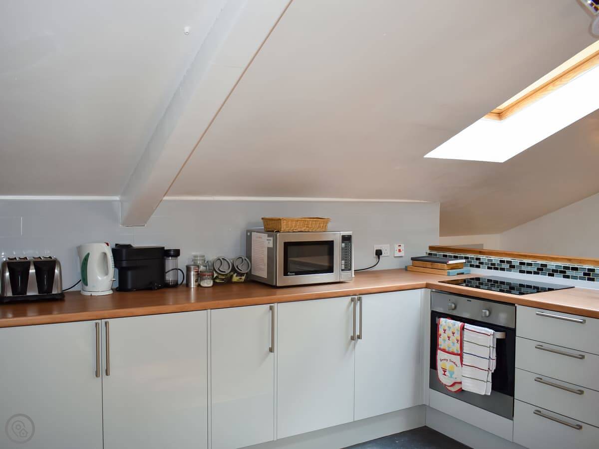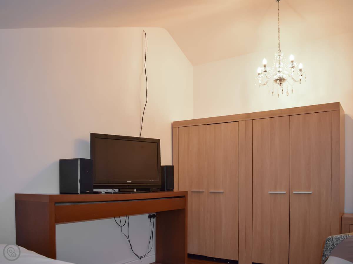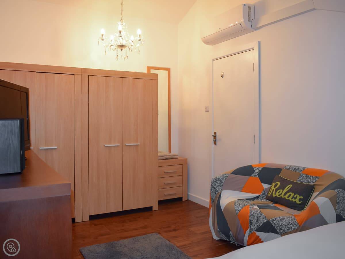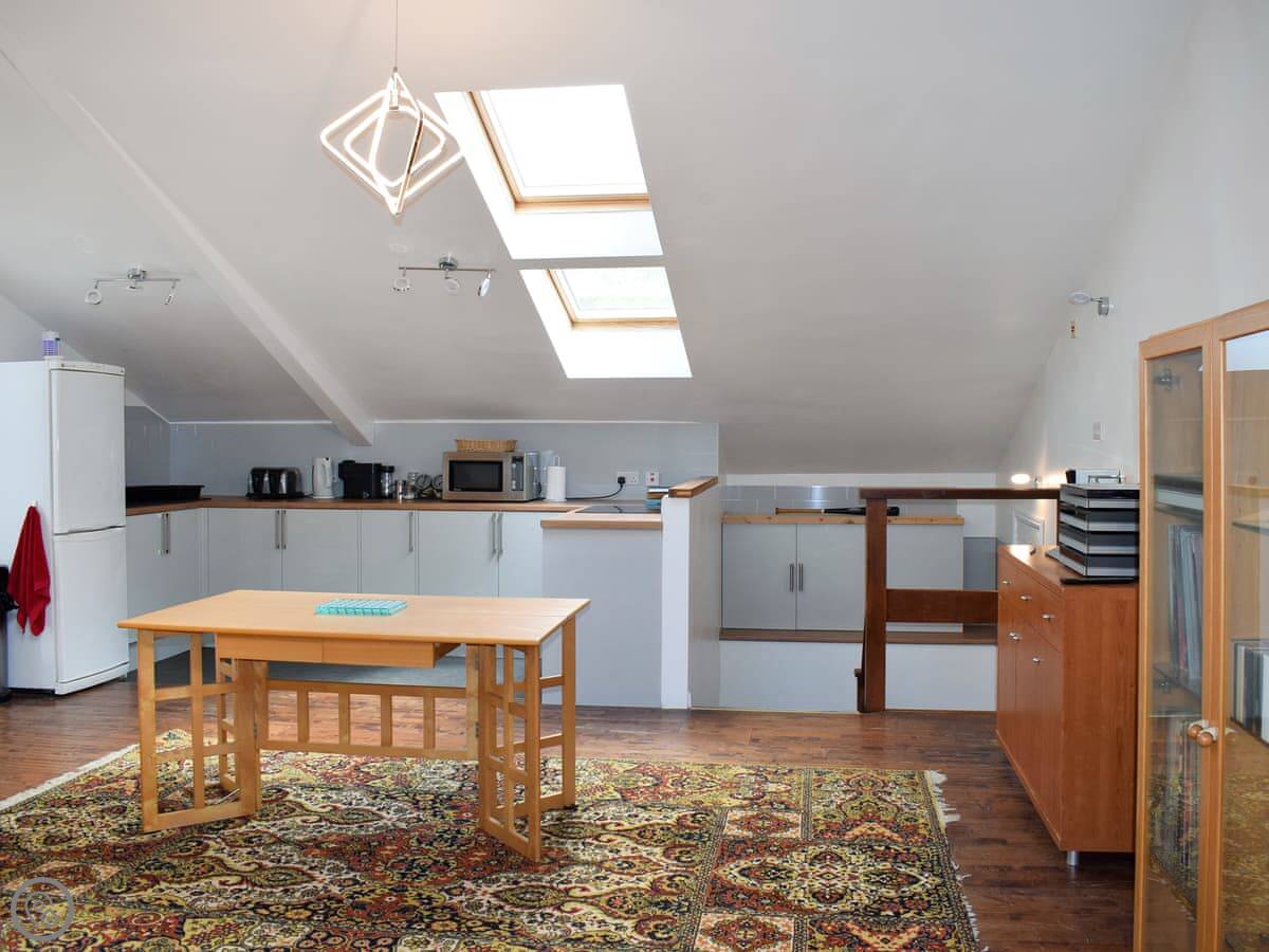 It sleeps two in the main bedroom, but there are two double sofa beds in the living area as well. So you could have more people, but it's really best for a couple. It's got a 4 Star rating. It's modern inside, but it’s still a barn so the ceilings are high and the space feels open.