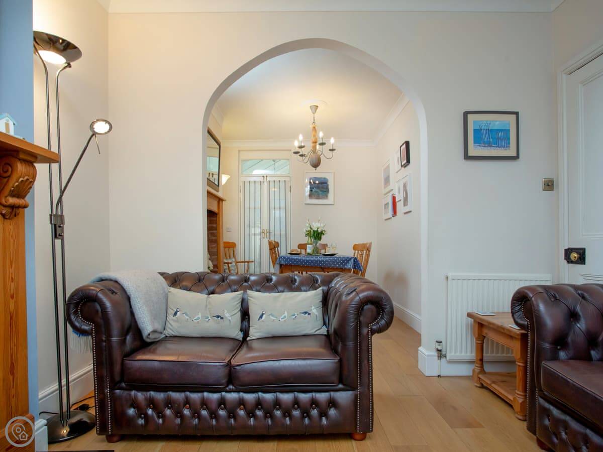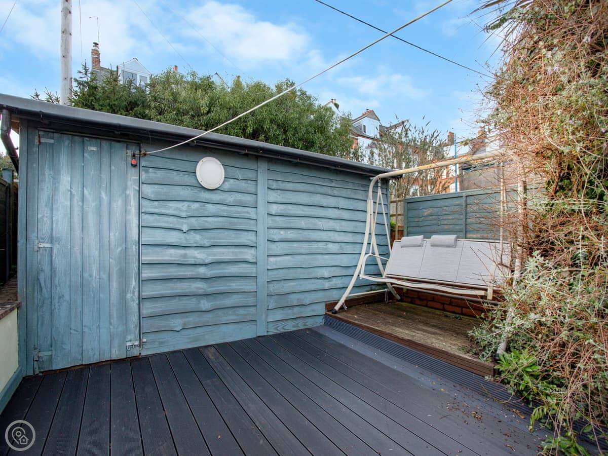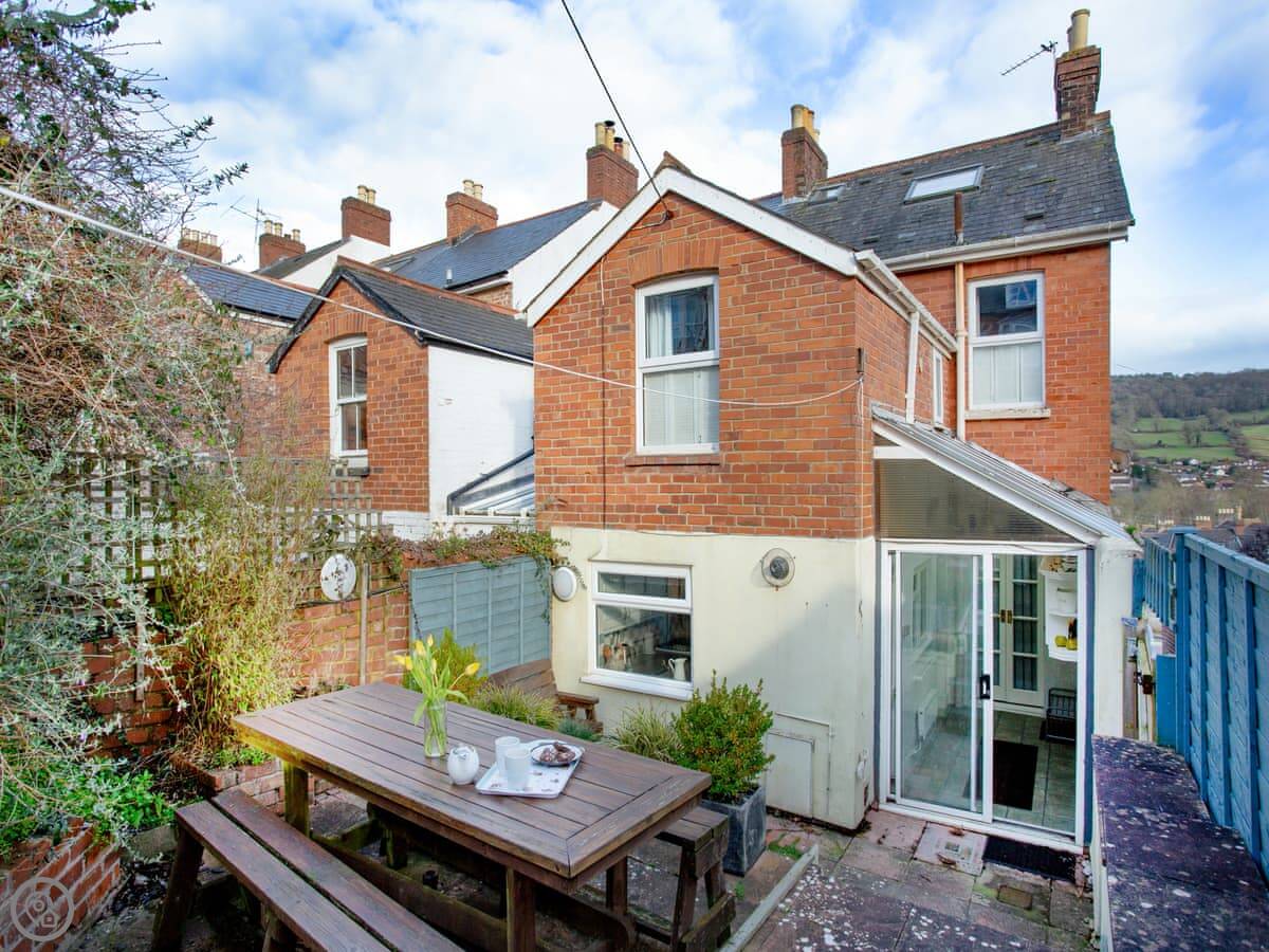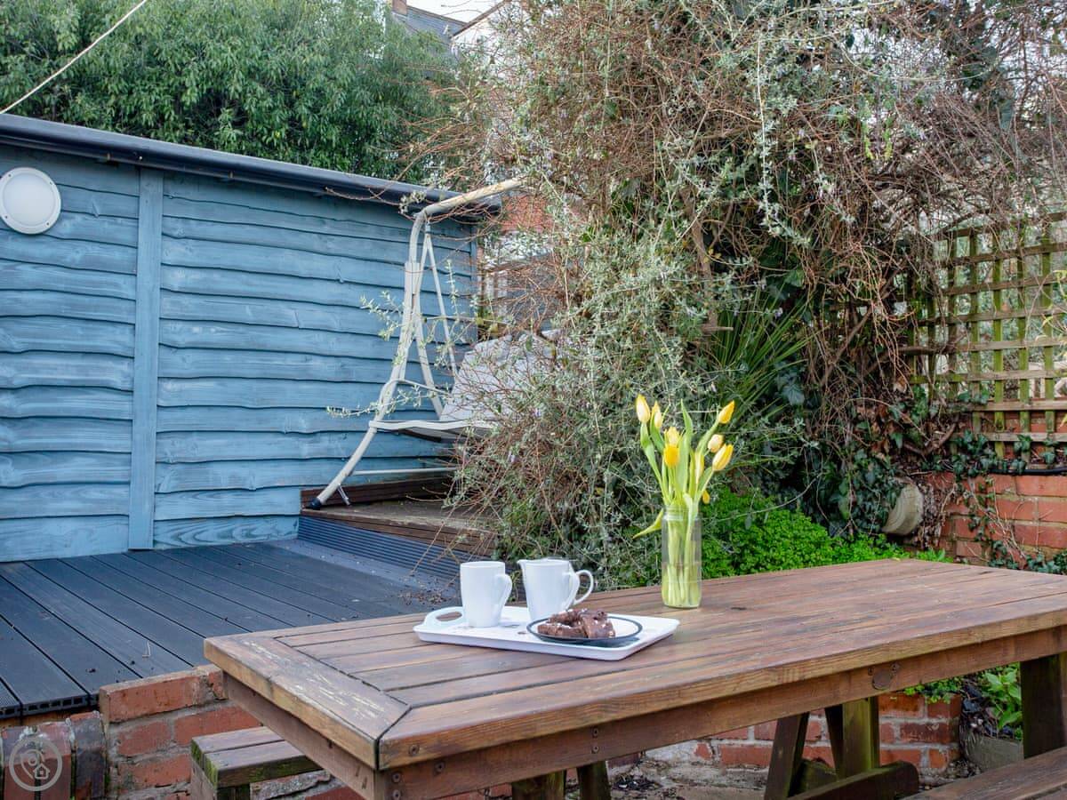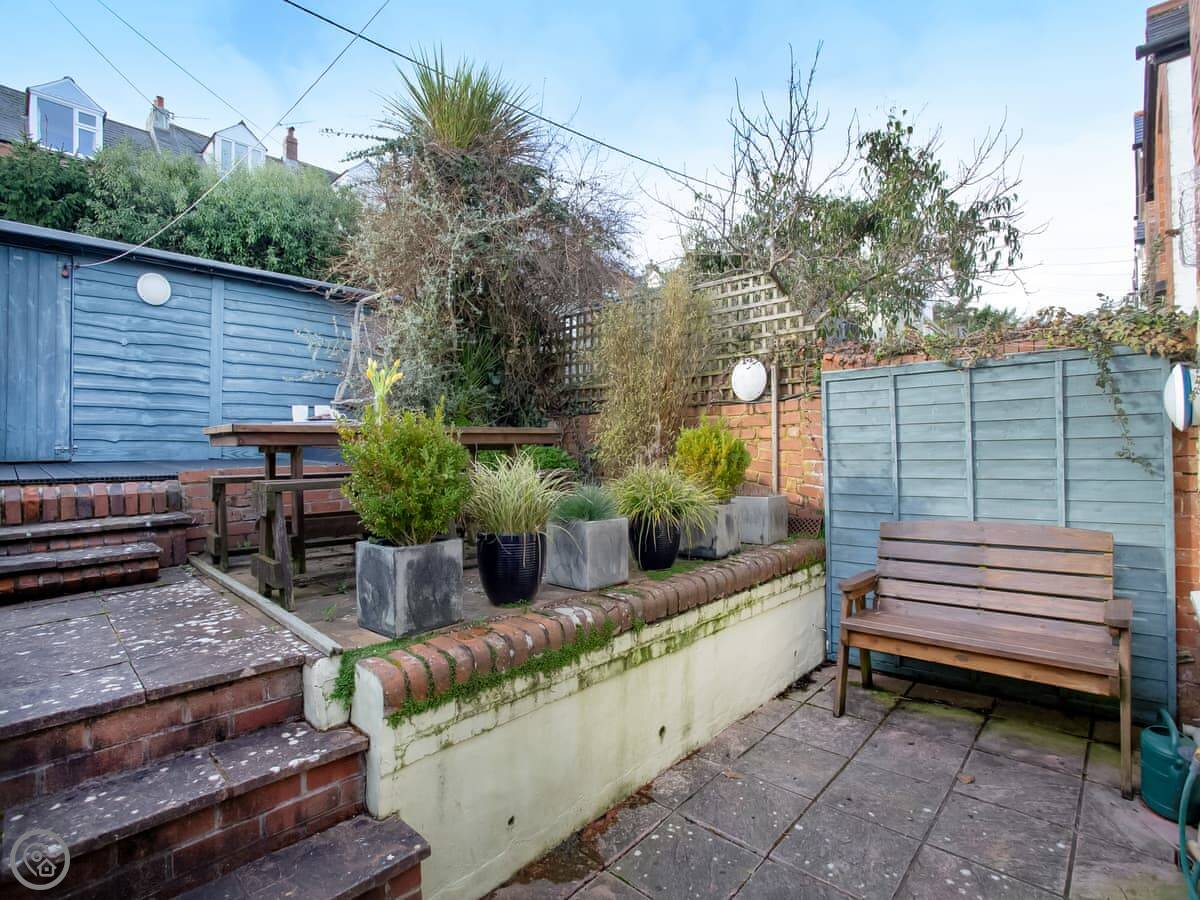 You’re about a ten minute walk from the town centre and the beach. The garden is tiered, so it's on a bit of a slope but it gets the sun.