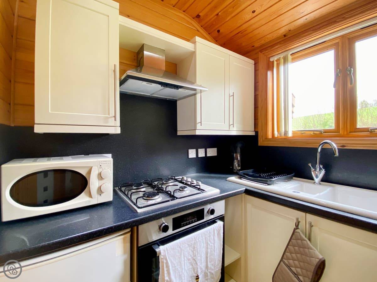 This is Apple. It's a studio apartment in Camerton, Somerset, part of a site called Pinecone Lodges. Sleeps two.