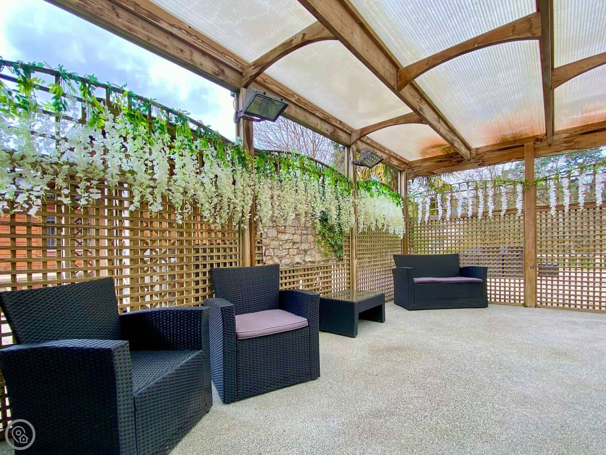 The main thing is the shared facilities on site. There's an outdoor heated swimming pool with its own changing room. A cinema room. A games room. An enclosed play area for kids with swings and a slide. A sun terrace and a barbecue area.