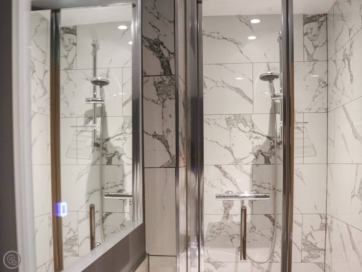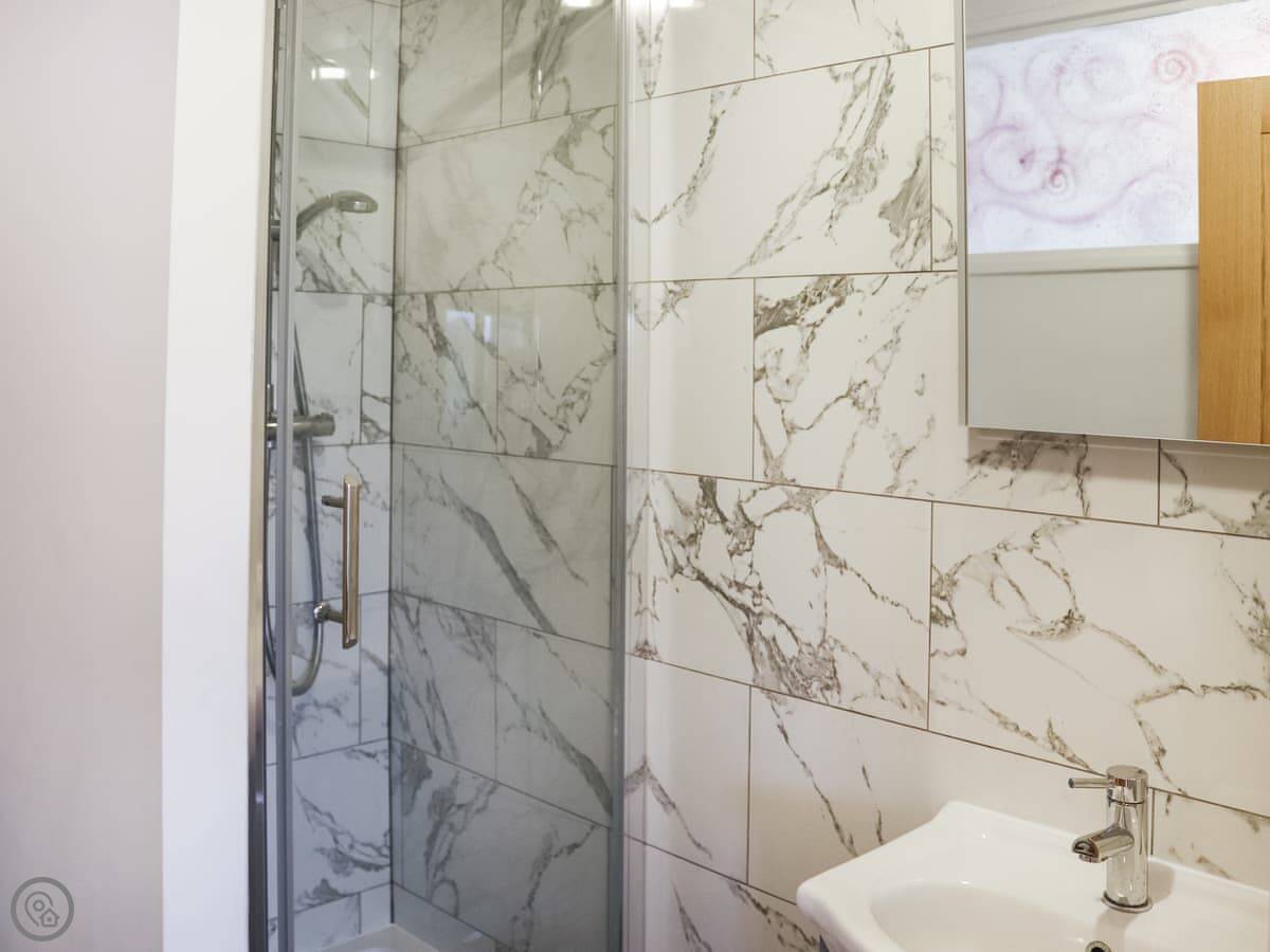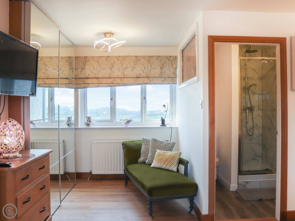 It sleeps eight. Four bedrooms, three bathrooms. Two of the bedrooms have their own shower rooms. There's another family bathroom with a jacuzzi bath. It's a 5 Star place, so it's well kept. Everything works.