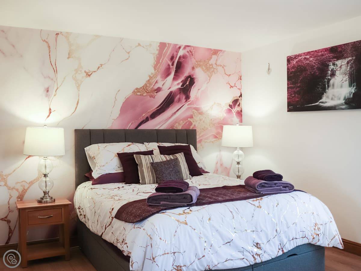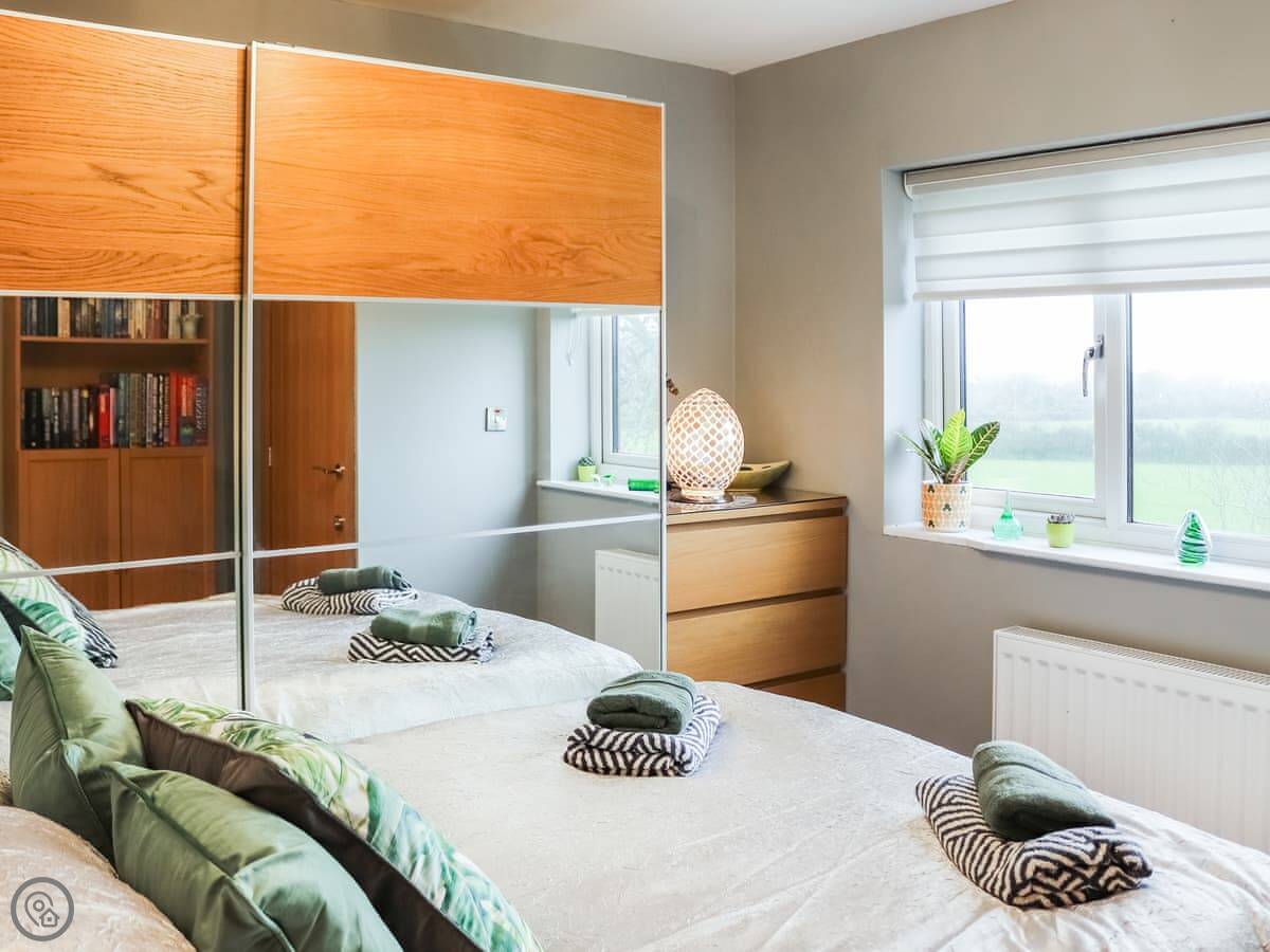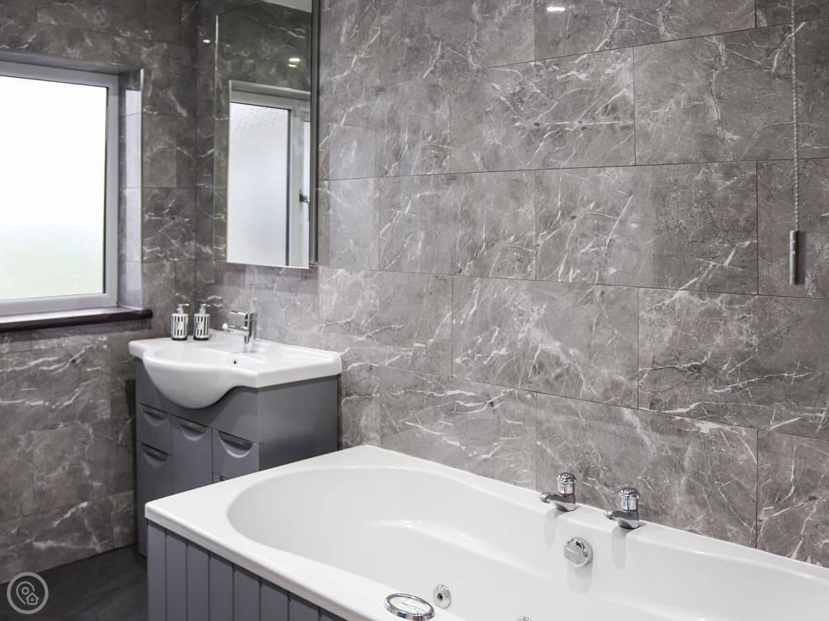 It sleeps eight. Four bedrooms, three bathrooms. Two of the bedrooms have their own shower rooms. There's another family bathroom with a jacuzzi bath. It's a 5 Star place, so it's well kept. Everything works.