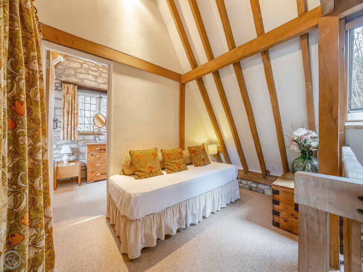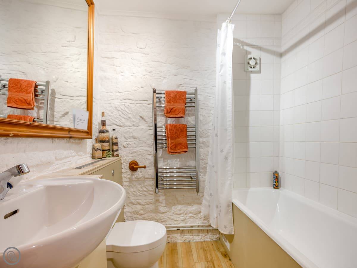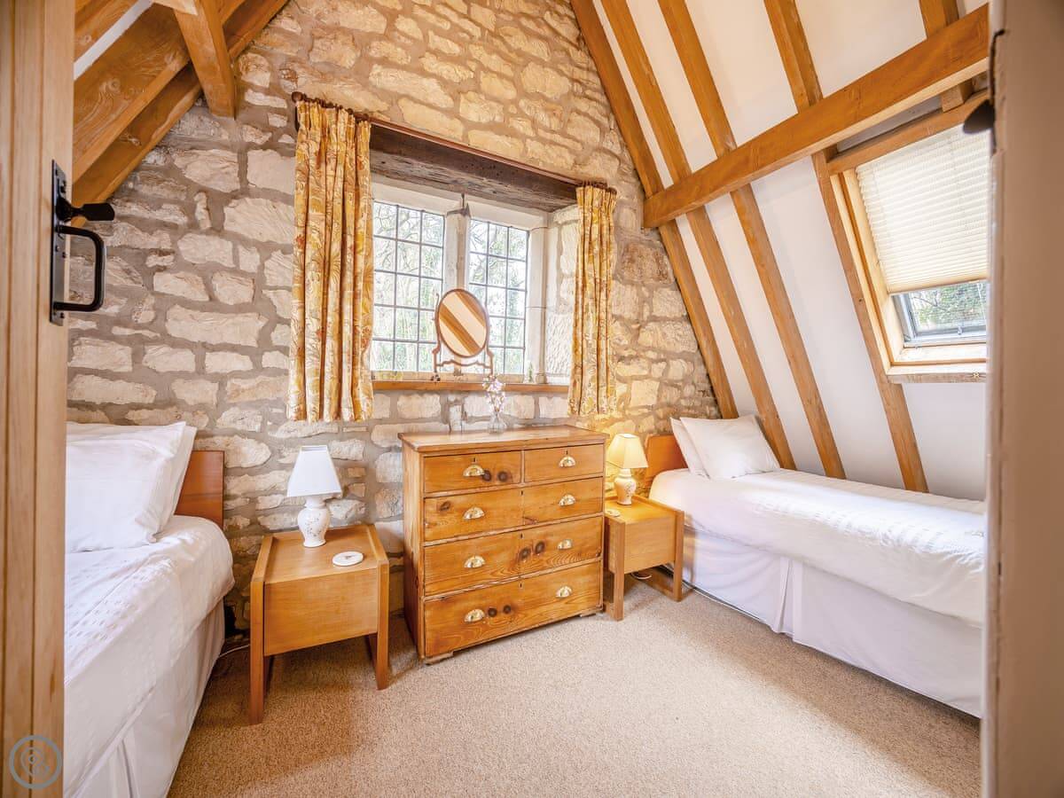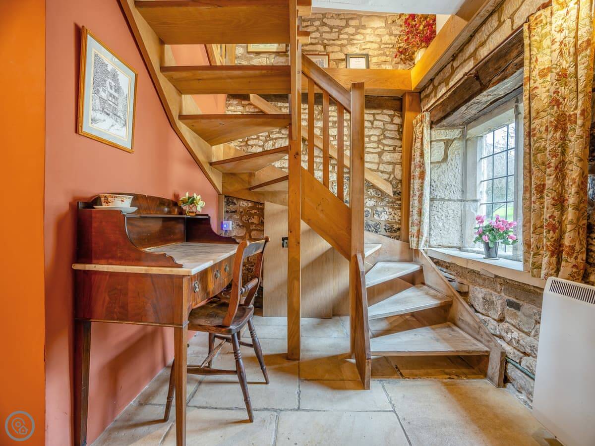 It sleeps four. Two bedrooms, one bathroom. It's got a 4 Star rating. It's comfortable and well kept. The stairs are the original ones, so they're a bit steep and winding. Just mind your head on the beams upstairs.