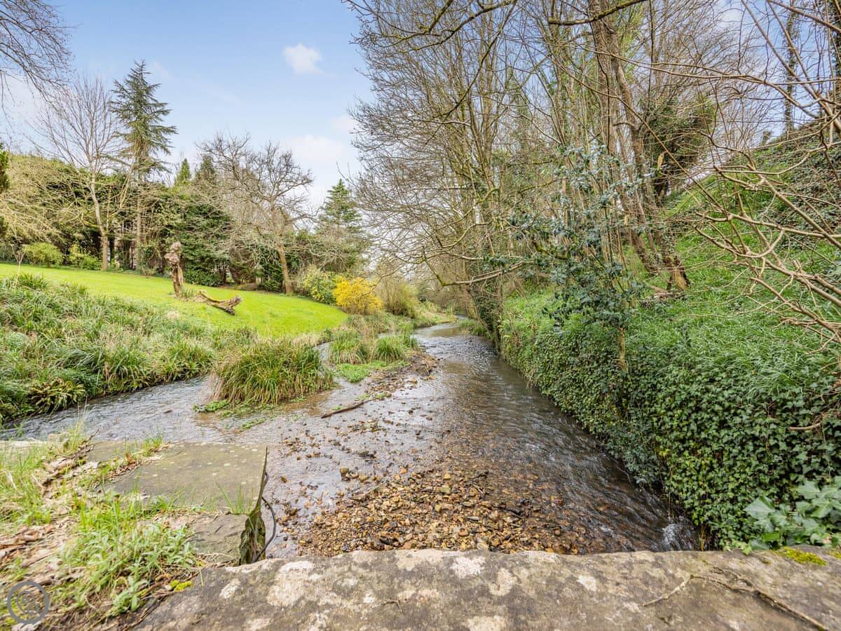 Outside, there's a patio by the stream with a table and chairs. The garden is shared with us, but we're not around much. You're welcome to use it.