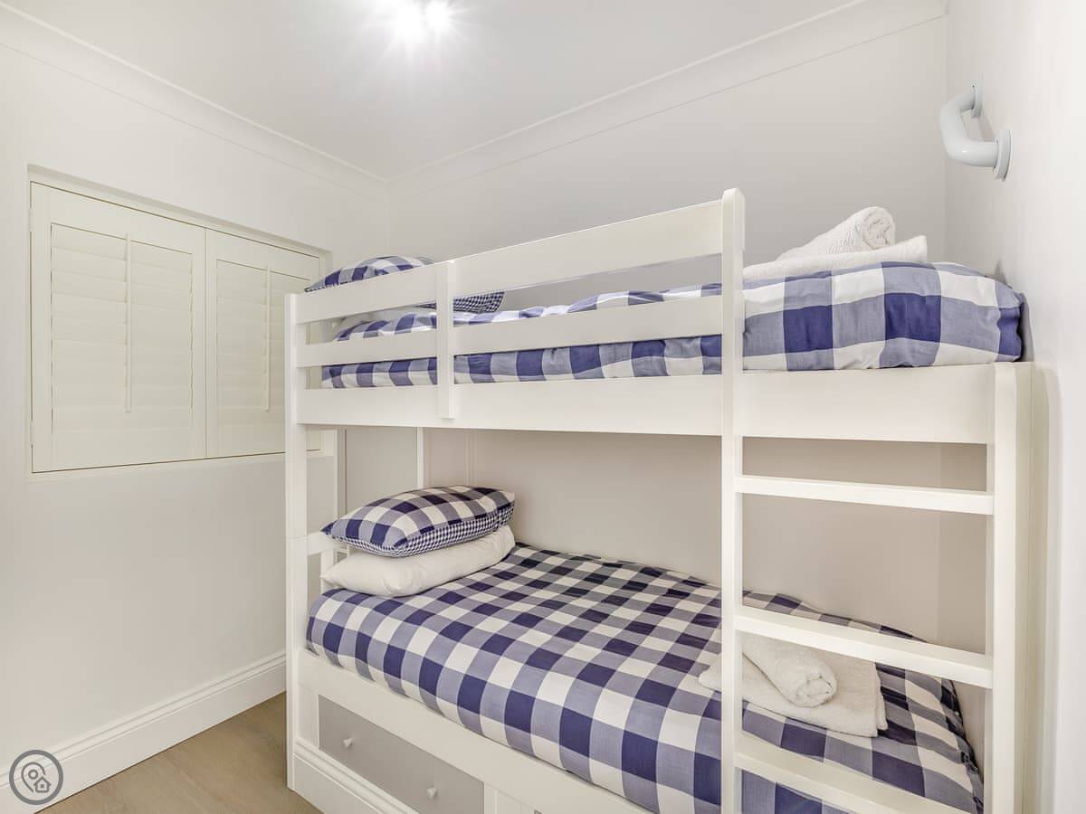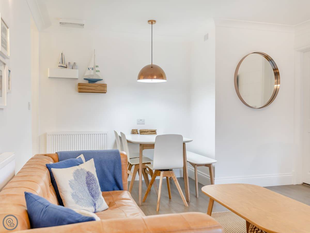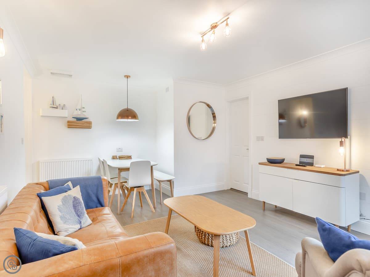 It sleeps six, with three bedrooms and two bathrooms. It's got a 4 Star rating, which means it's been modernised to a good standard. Everything is clean and new. The living area is open-plan, so it feels quite spacious.