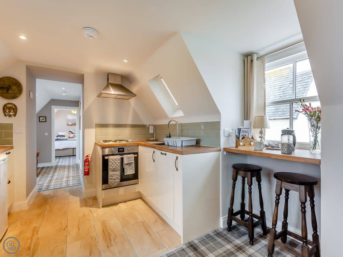 It's a one bedroom place for two people. One bathroom with a shower. It's got a 4 Star rating. It's well done, comfortable and clean. The kitchen is modern and has what you need.