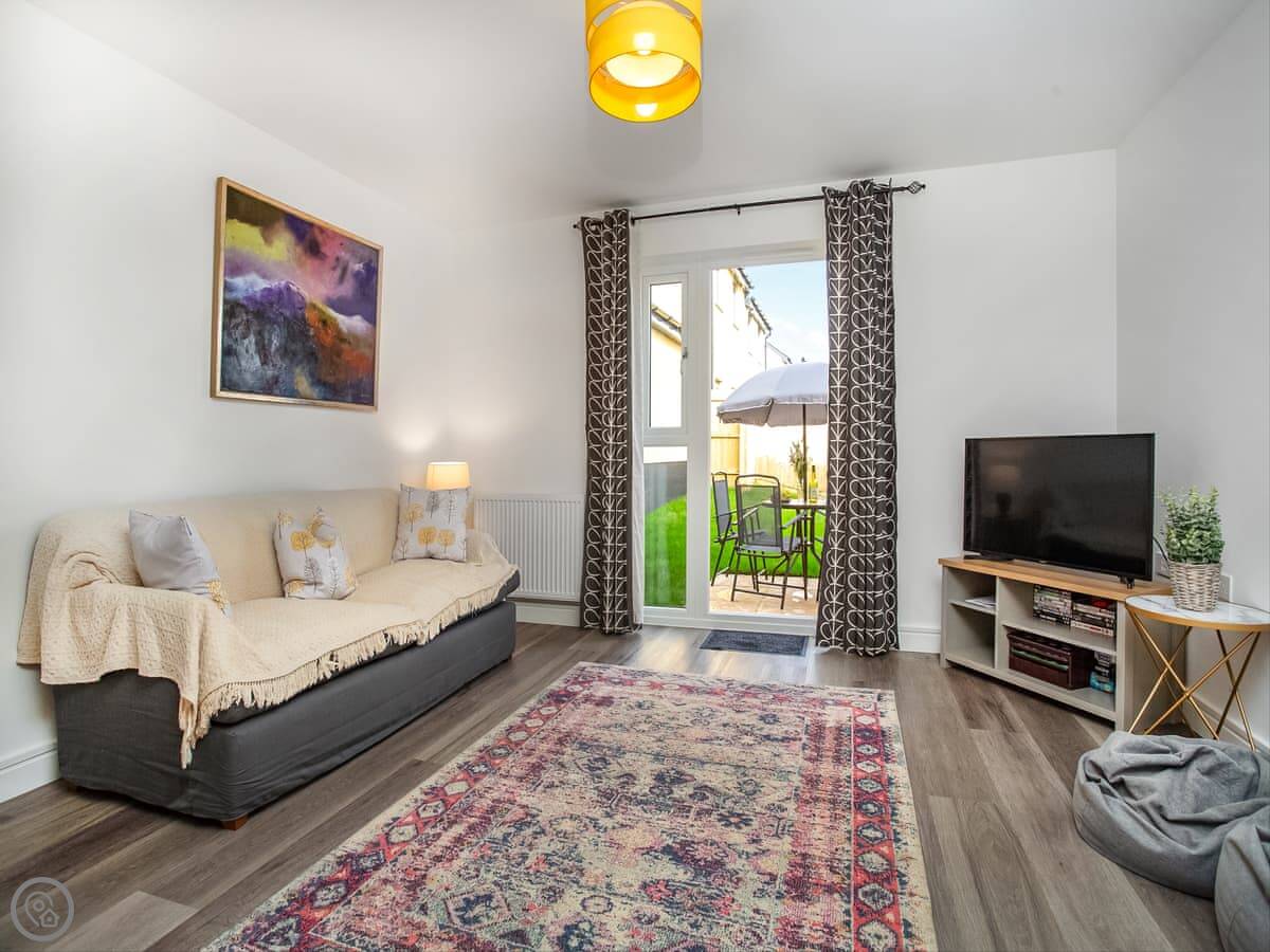 It's got a 4 Star rating, which means it's comfortable and well equipped. The living area is bright, with patio doors to the garden. There's a downstairs toilet. Upstairs are two bedrooms: one double, one twin, and a family bathroom.