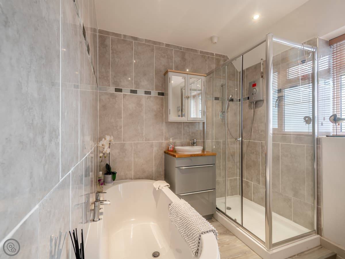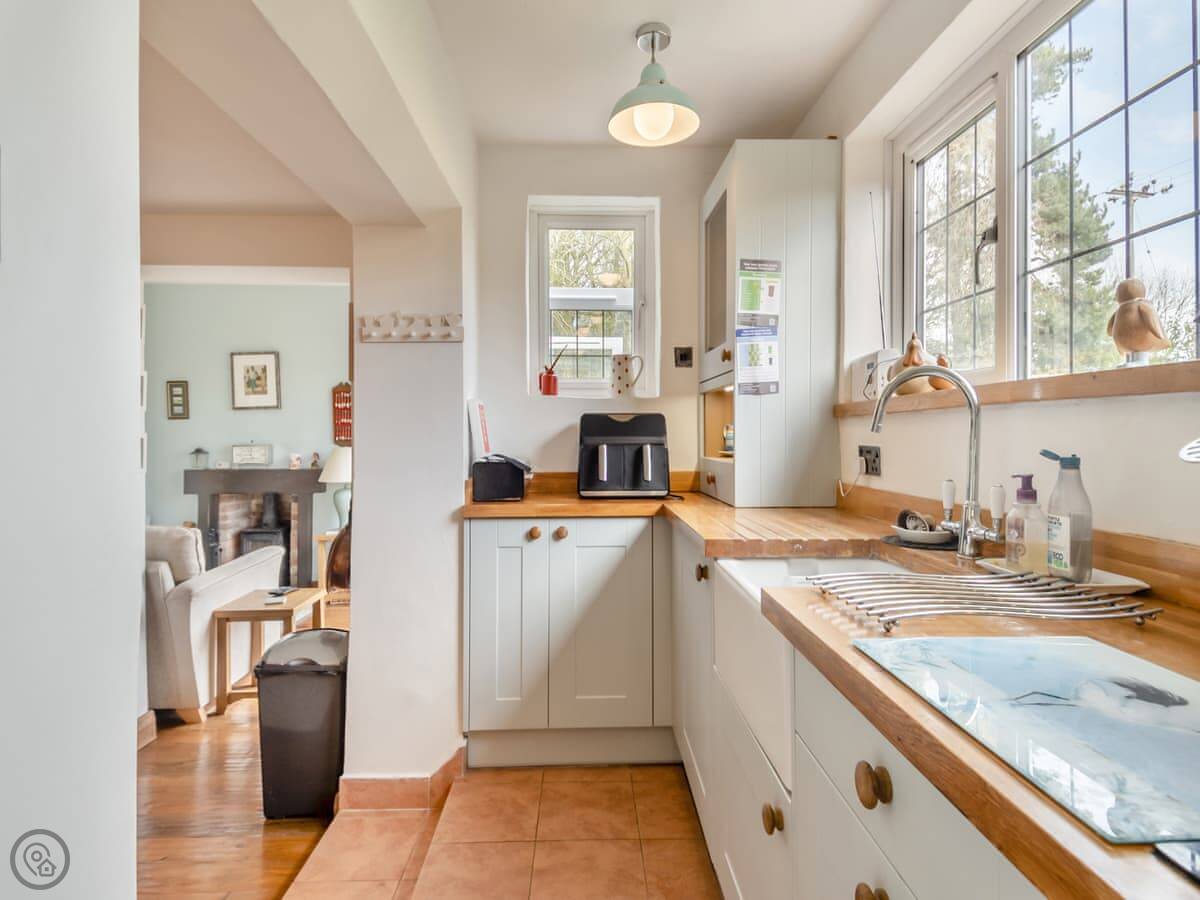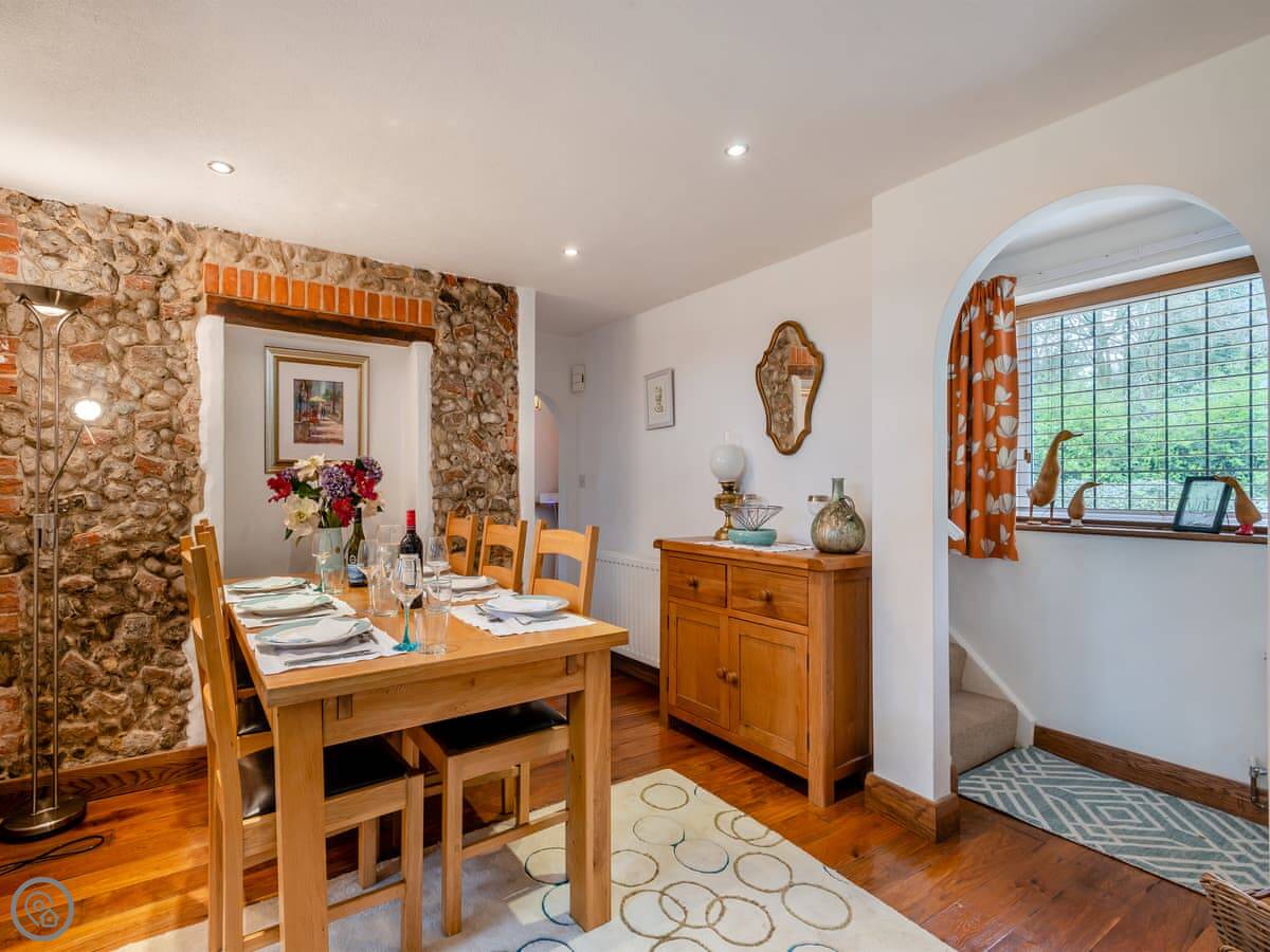 It's a brick and flint place, about two hundred years old. It feels solid. You've got oak floors inside and a wood burner in the living room. It's got two bathrooms, with one being on the ground floor next to a bedroom. That might be useful for someone. The stairs are normal cottage stairs, so watch your head a bit.