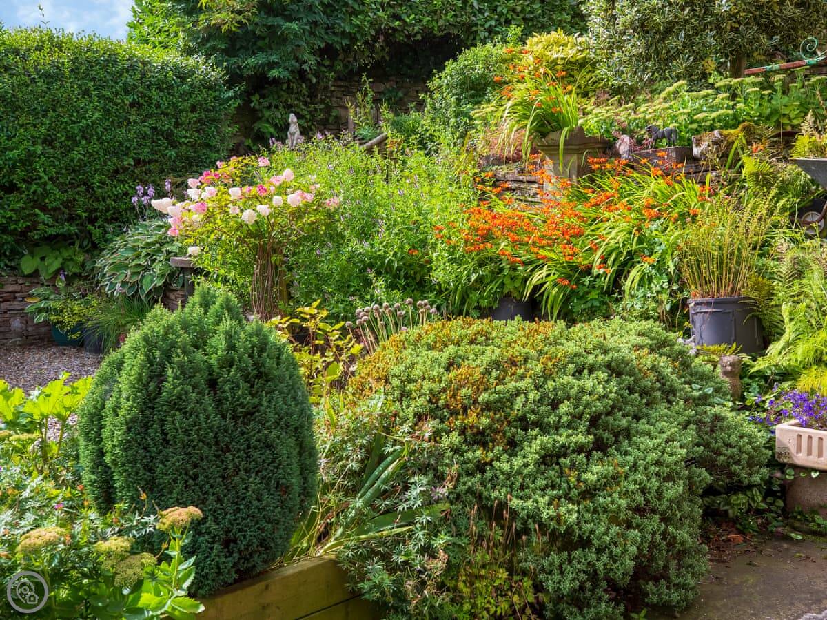 The garden is enclosed and on three levels, with seating in different spots. It’s not a huge lawn for running about, but it’s a nice private space with mature plants.