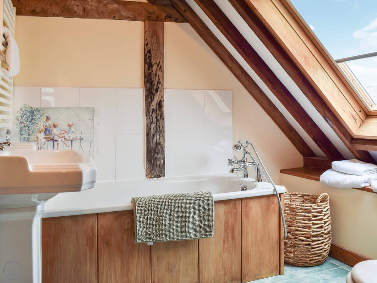 It sleeps seven. Three bedrooms, one bathroom, and there's a shower room en-suite to one of the downstairs bedrooms. The stairs are a standard staircase, nothing too narrow. It’s got a 4 Star rating.