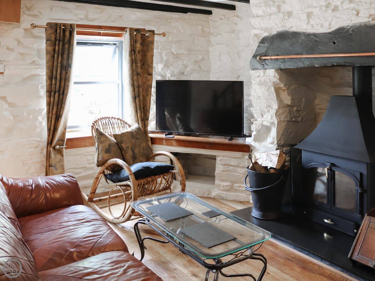 Bwthyn Afon is in Tanygrisiau, just outside Blaenau Ffestiniog. It's a terrace cottage, solid stone, built for quarry workers. The back garden is enclosed so it's safe for a dog.