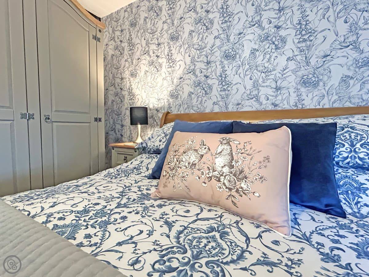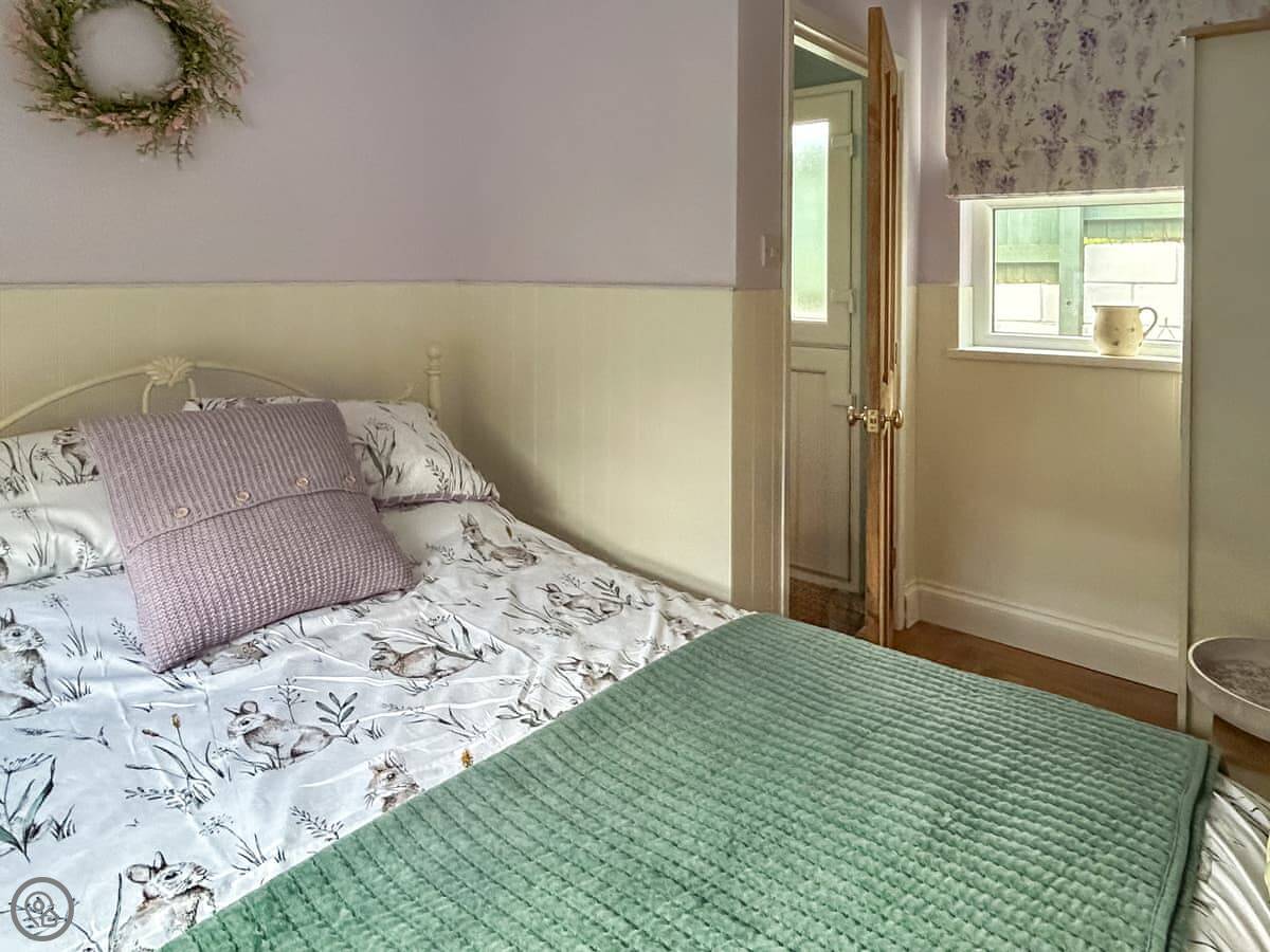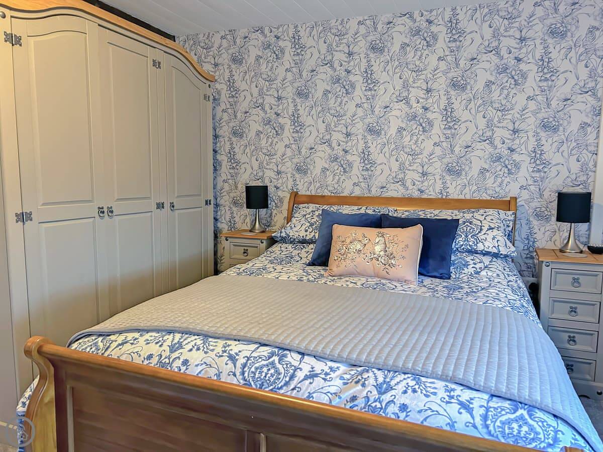 It sleeps four, with two double bedrooms and one bathroom. It's got a 5 Star rating, which means it's been checked for things like good heating and a decent kitchen. There's a wood burner, which is nice in the cooler months. The kitchen's got a dishwasher, an air fryer, and a slow cooker if you want to use them.