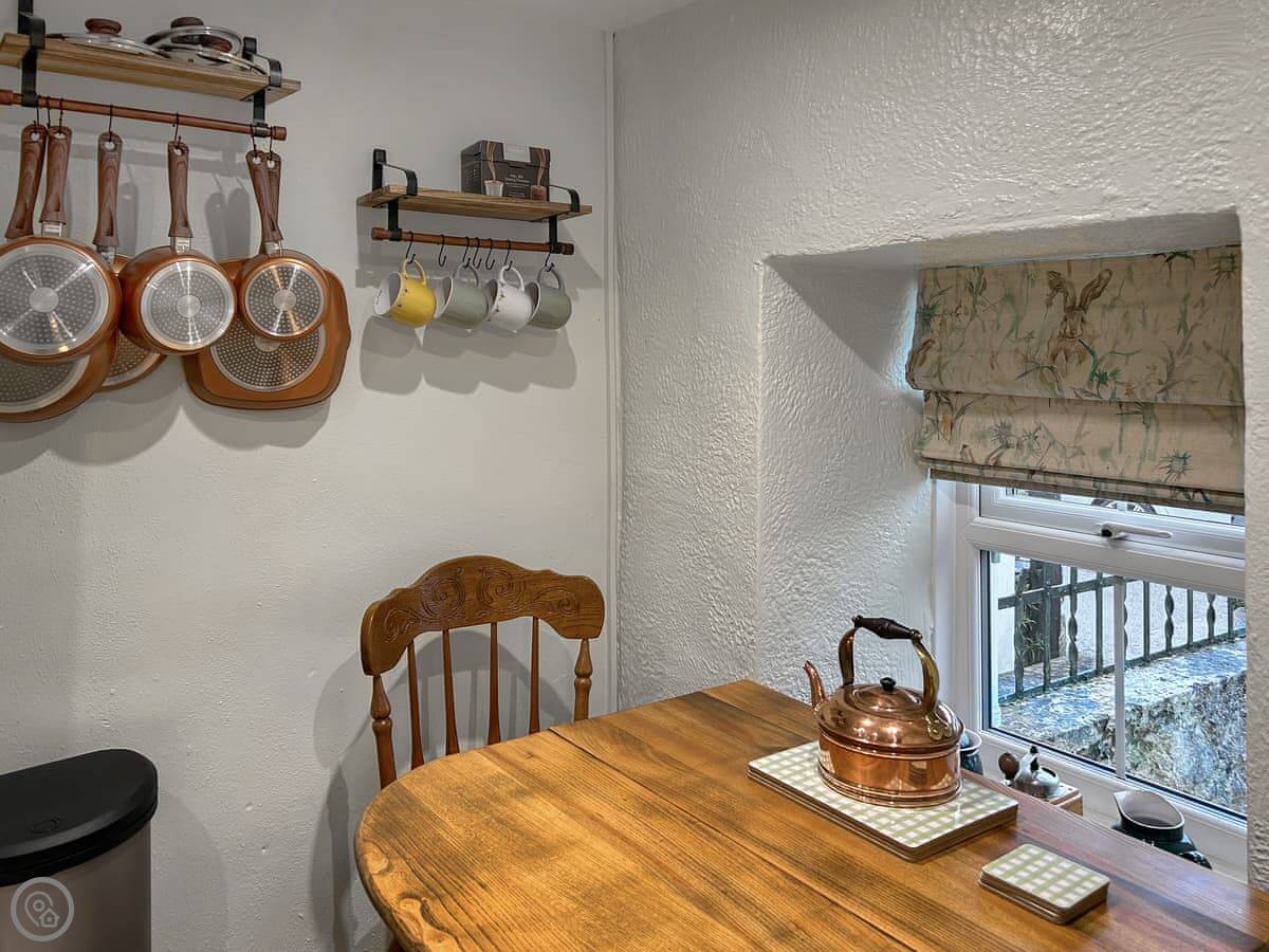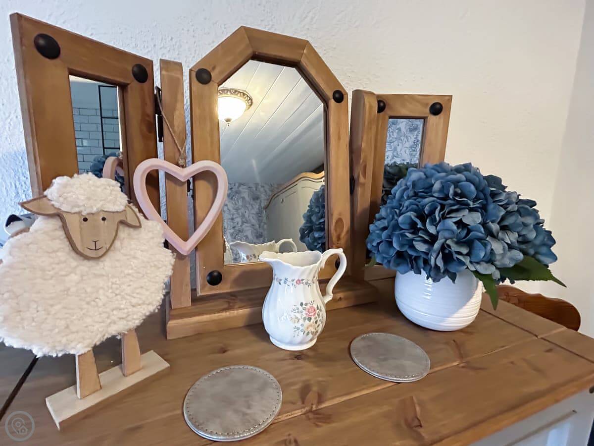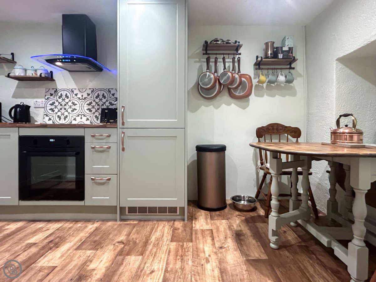 It sleeps four, with two double bedrooms and one bathroom. It's got a 5 Star rating, which means it's been checked for things like good heating and a decent kitchen. There's a wood burner, which is nice in the cooler months. The kitchen's got a dishwasher, an air fryer, and a slow cooker if you want to use them.
