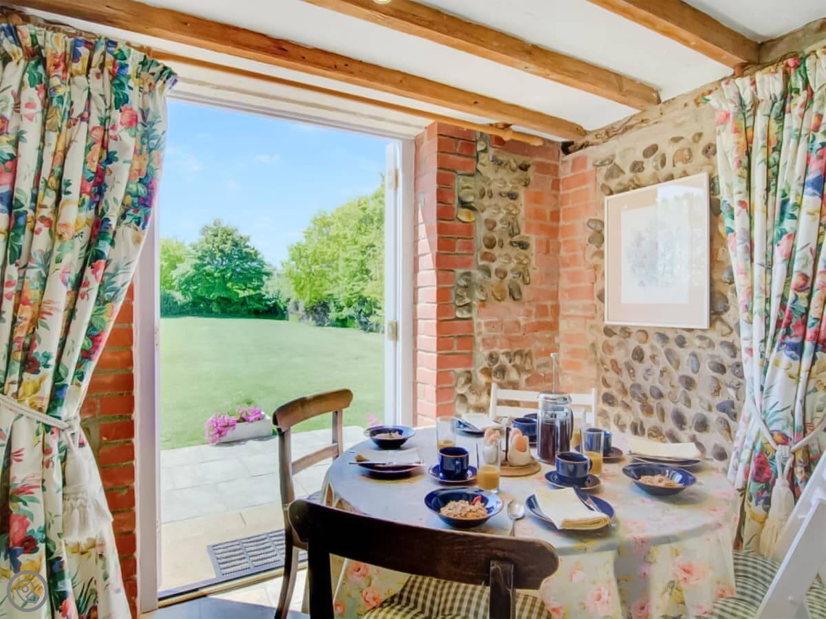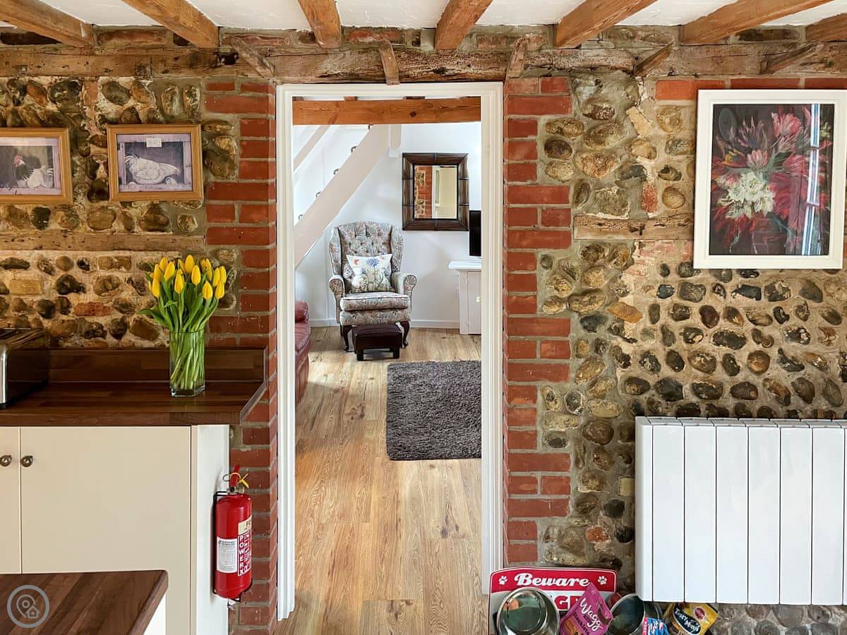 The Gig House is in Ridlington, Norfolk. It's a detached cottage, used to be a stable and coach house. We've just finished renovating it. It's built from flint and brick, which is pretty normal round here.