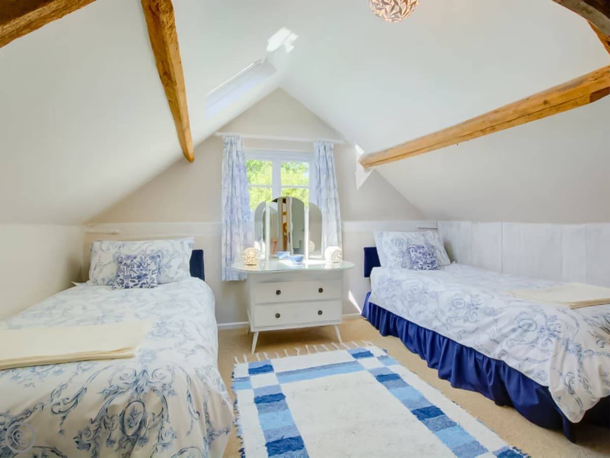 It sleeps four. Two bedrooms upstairs, one bathroom downstairs. It's got a 4 Star rating. The stairs are in the original part of the building, so they're a bit steep and narrow. Just so you know.