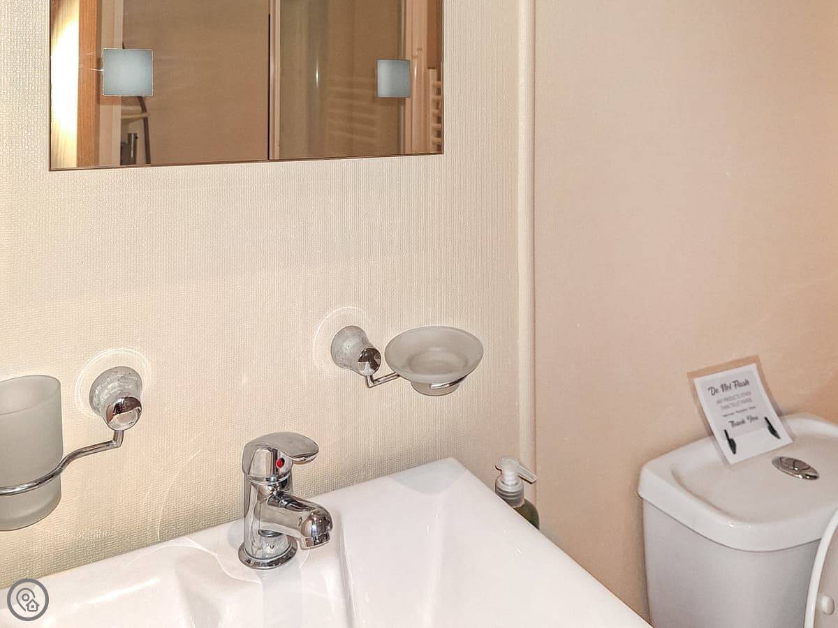 It sleeps four. Two bedrooms, two bathrooms so no queues in the morning. One’s on-suite to the main bedroom. It’s got a 4 Star rating. It’s modern and clean.