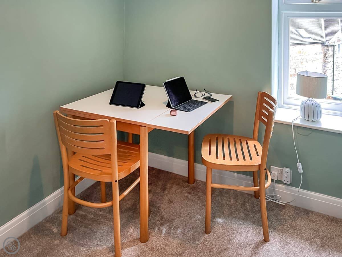 It sleeps four in two bedrooms, both doubles. It's got a 4 Star rating. It's comfortable. The bathroom is downstairs, which is fairly usual for around here.