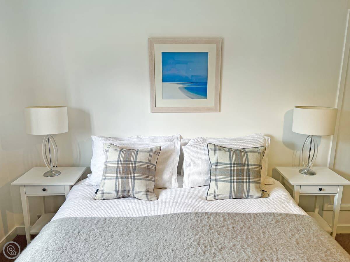 The cottage sleeps five people. There are three bedrooms and one bathroom. It's got a 3 Star rating, so it's comfortable and clean, not luxury. The stairs are normal.