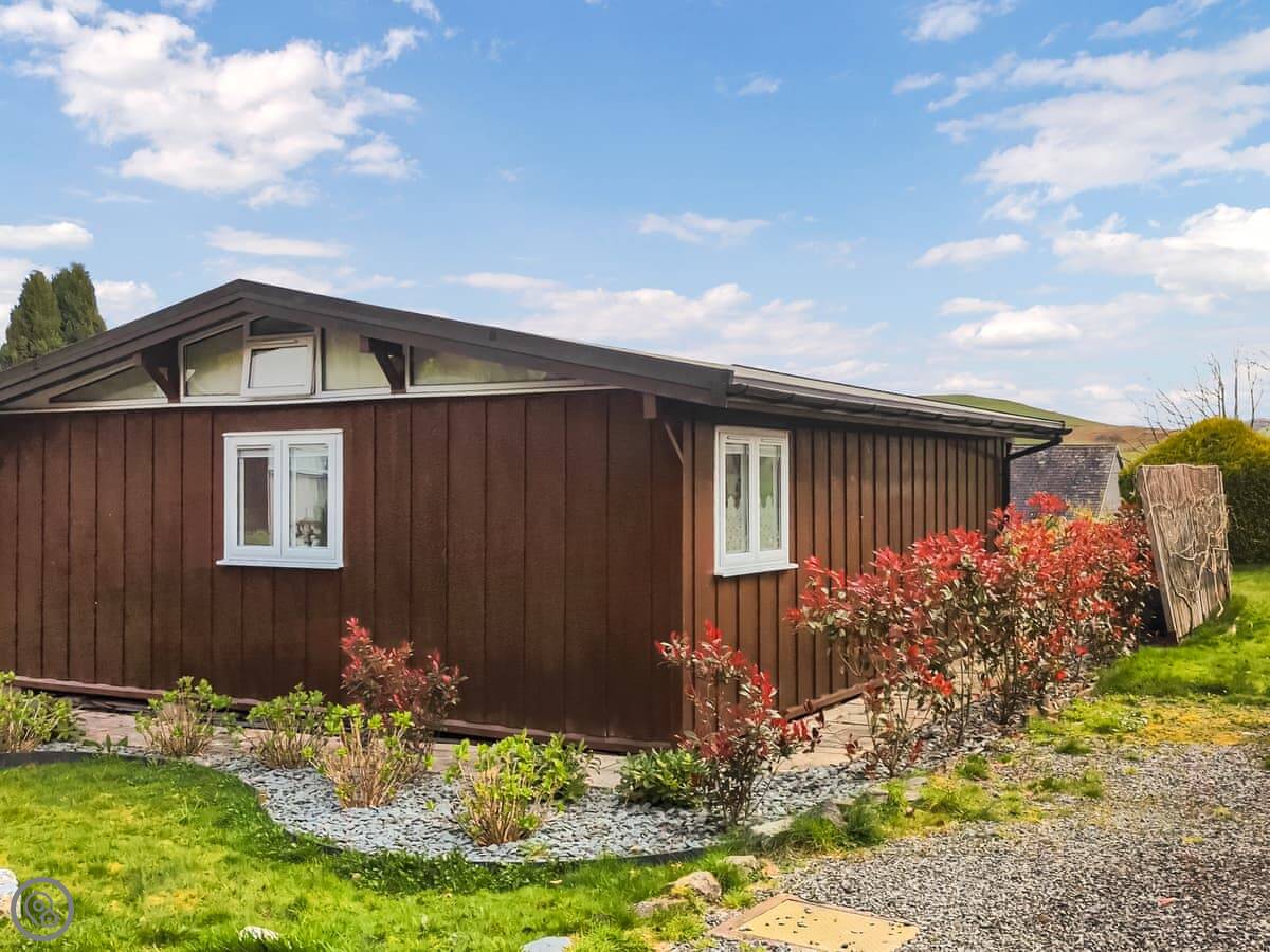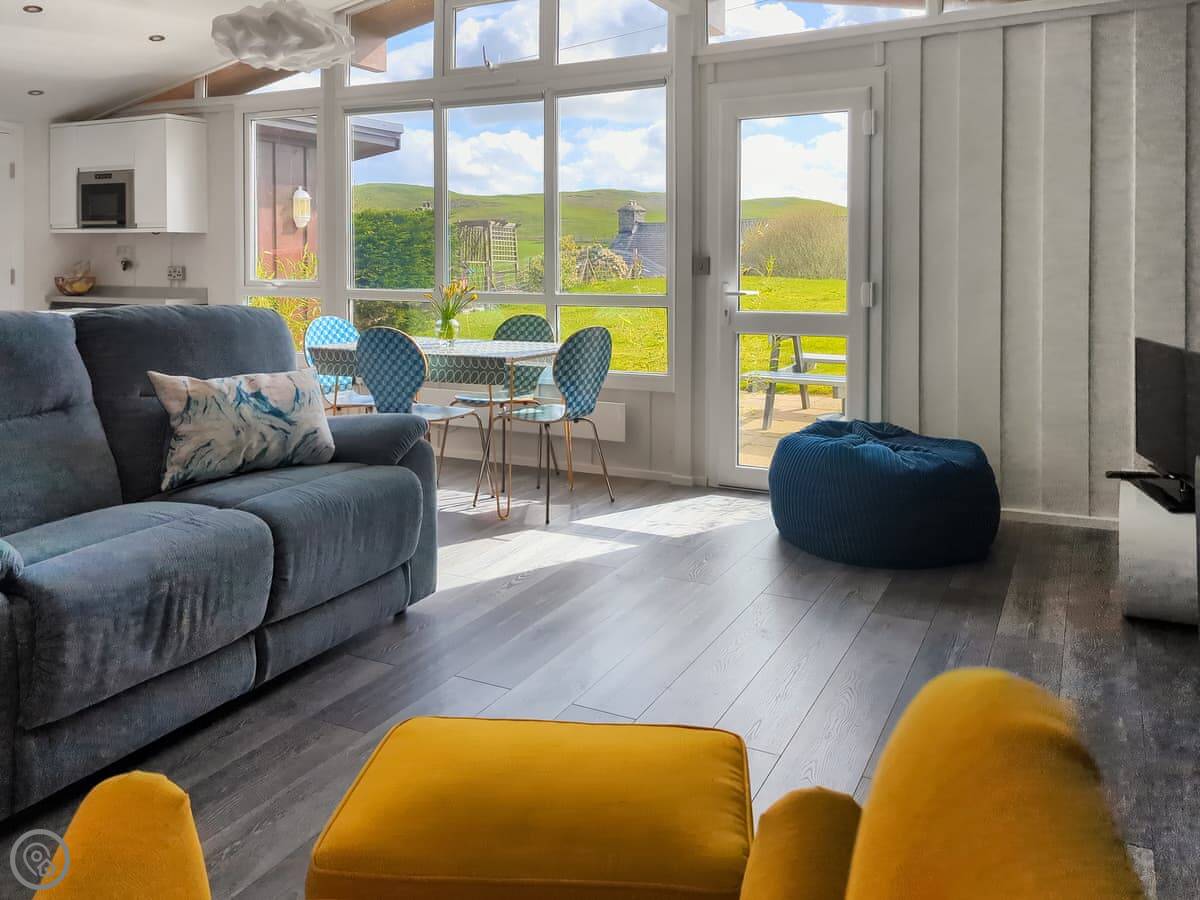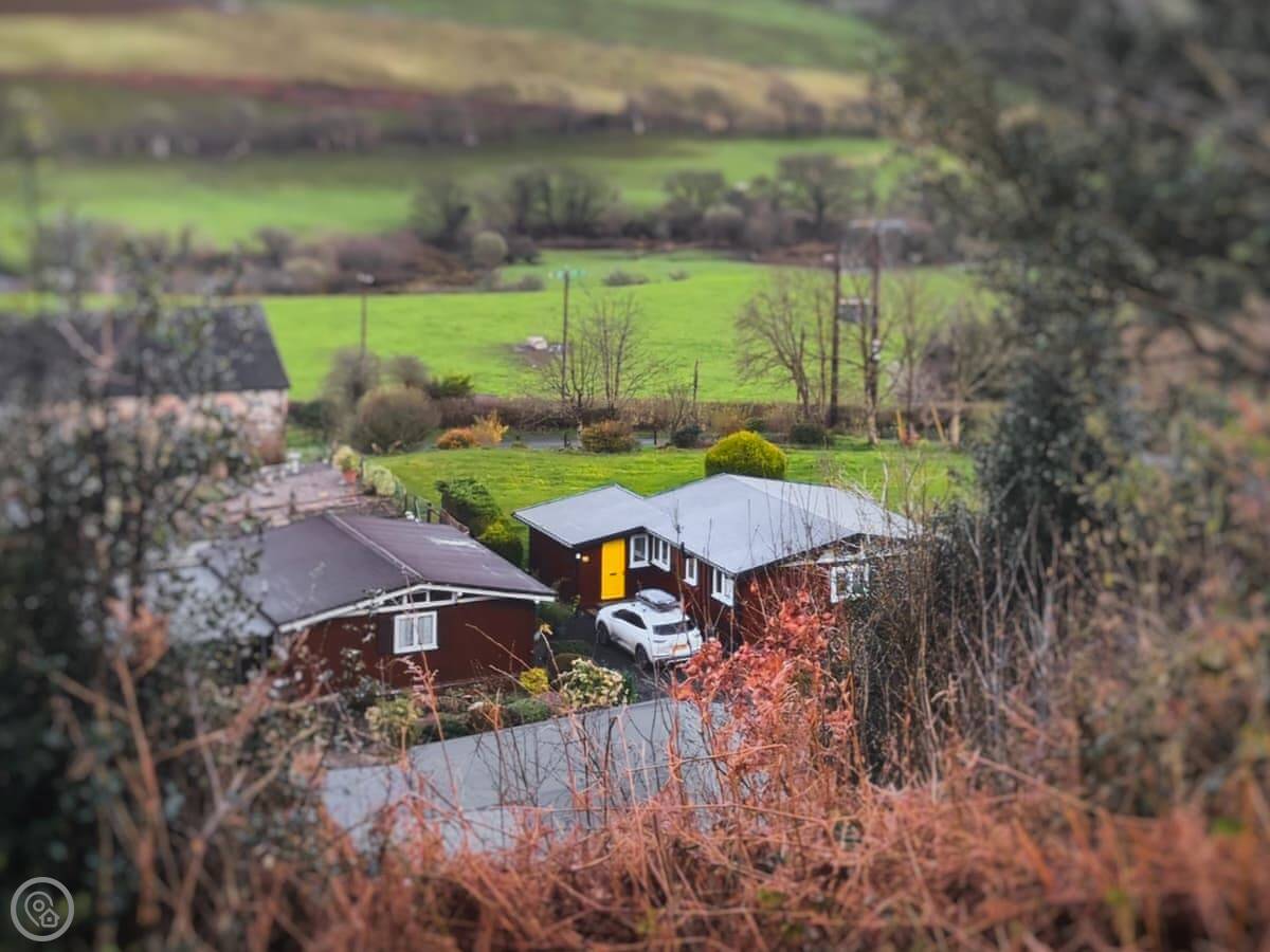 Ysgubor Lodge is a modern cabin in Llanwrin, near Machynlleth. It's on a small, private park of a few other lodges, so it's quiet but not totally isolated. The views out the back are the main thing, straight down the valley.
