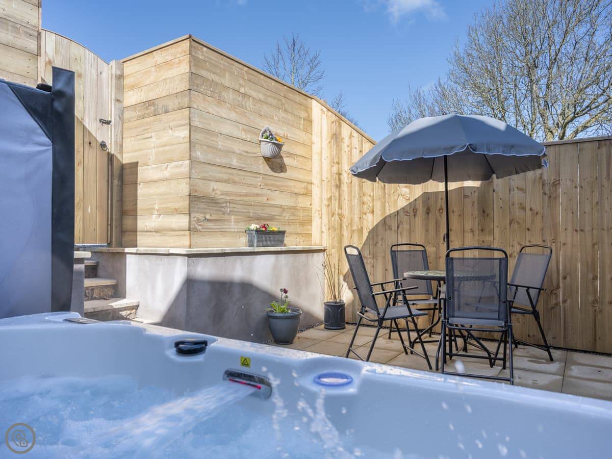 There's a hot tub in the private garden. It's not overlooked. We leave you a welcome pack with a cake, a bottle of wine, and some tea and coffee to get you started.
