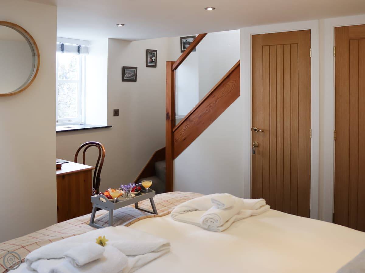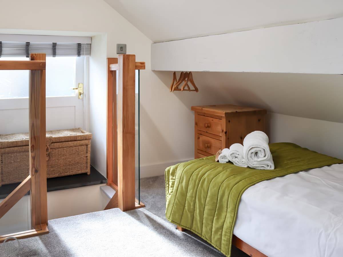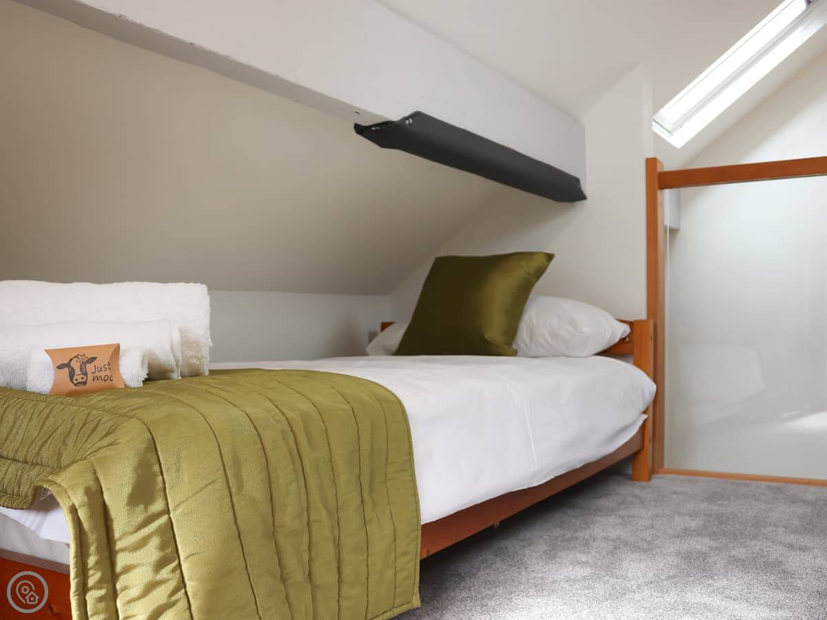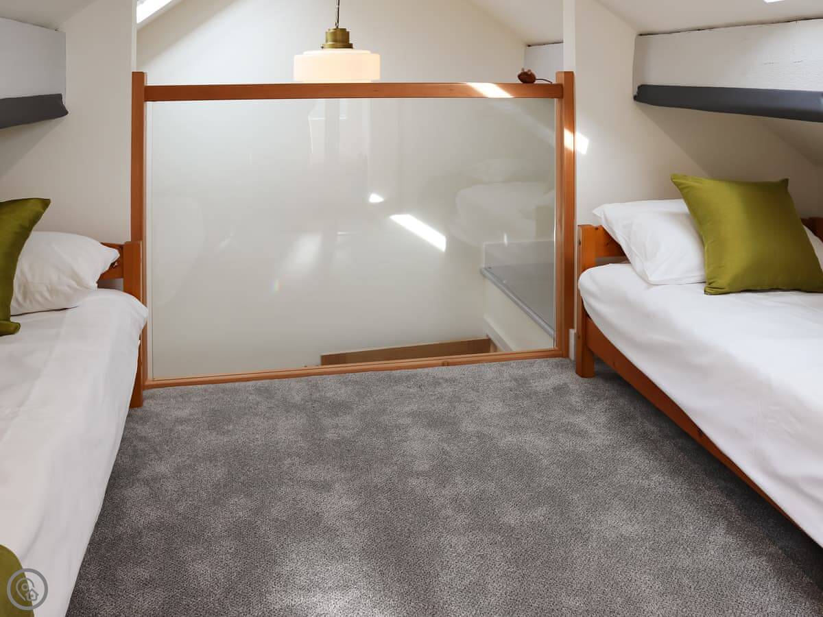 There are a couple of things to know. The stairs to the loft room are a ship's ladder. They're steep and open. The ceiling is low up there too. It's fine if you're okay with that, but it's worth mentioning.