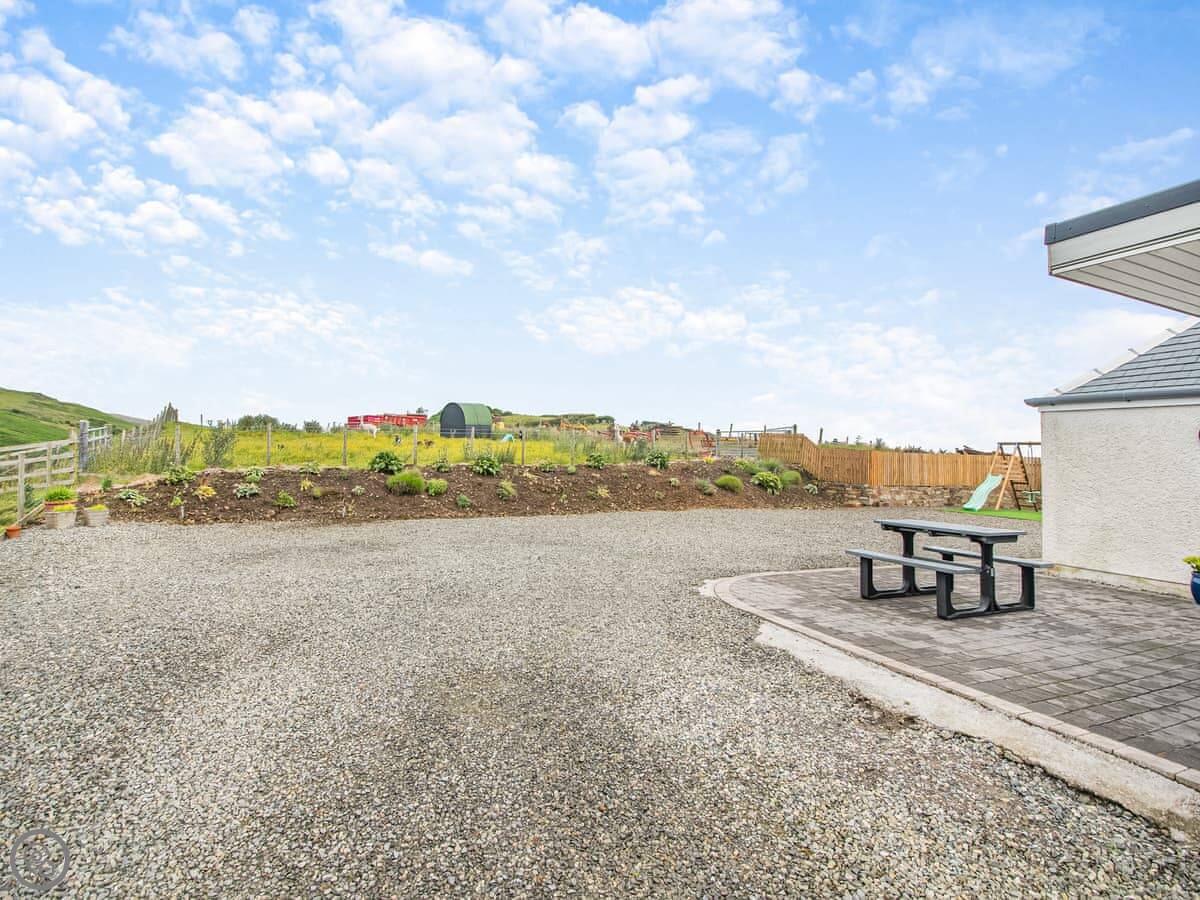 Outside, there's a separate summerhouse with the hot tub in it. That's handy, you don't have to go through the house to get to it. There's a patio with a table and a BBQ, and a bit of closed-off grass for kids. There's also a small play area.