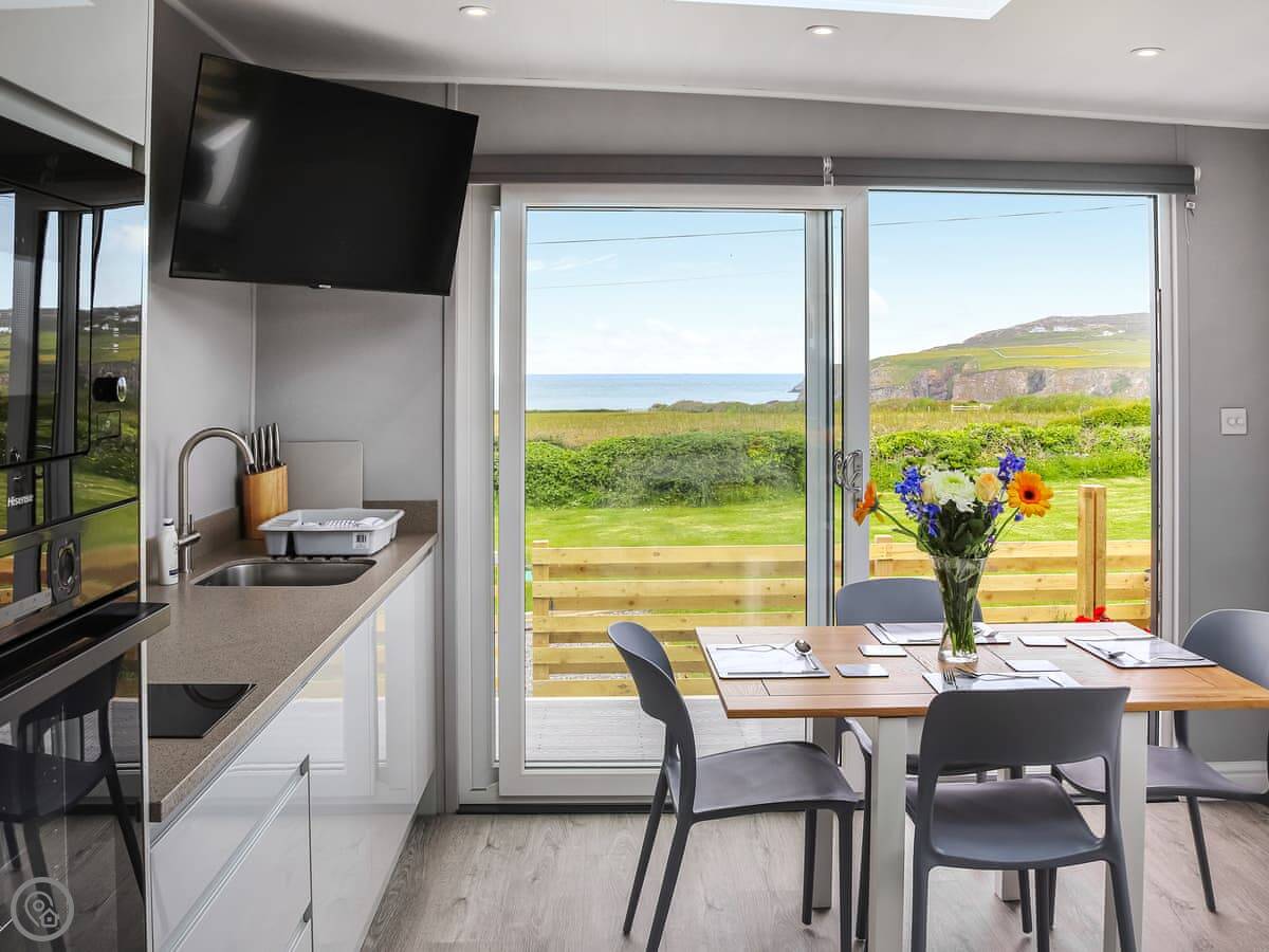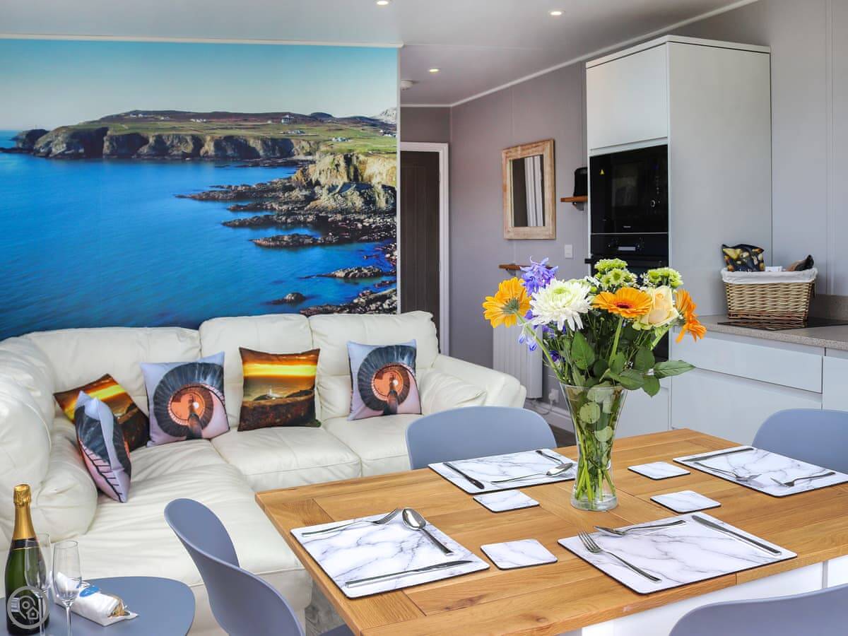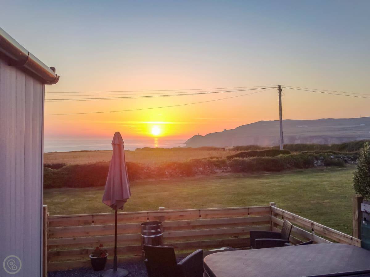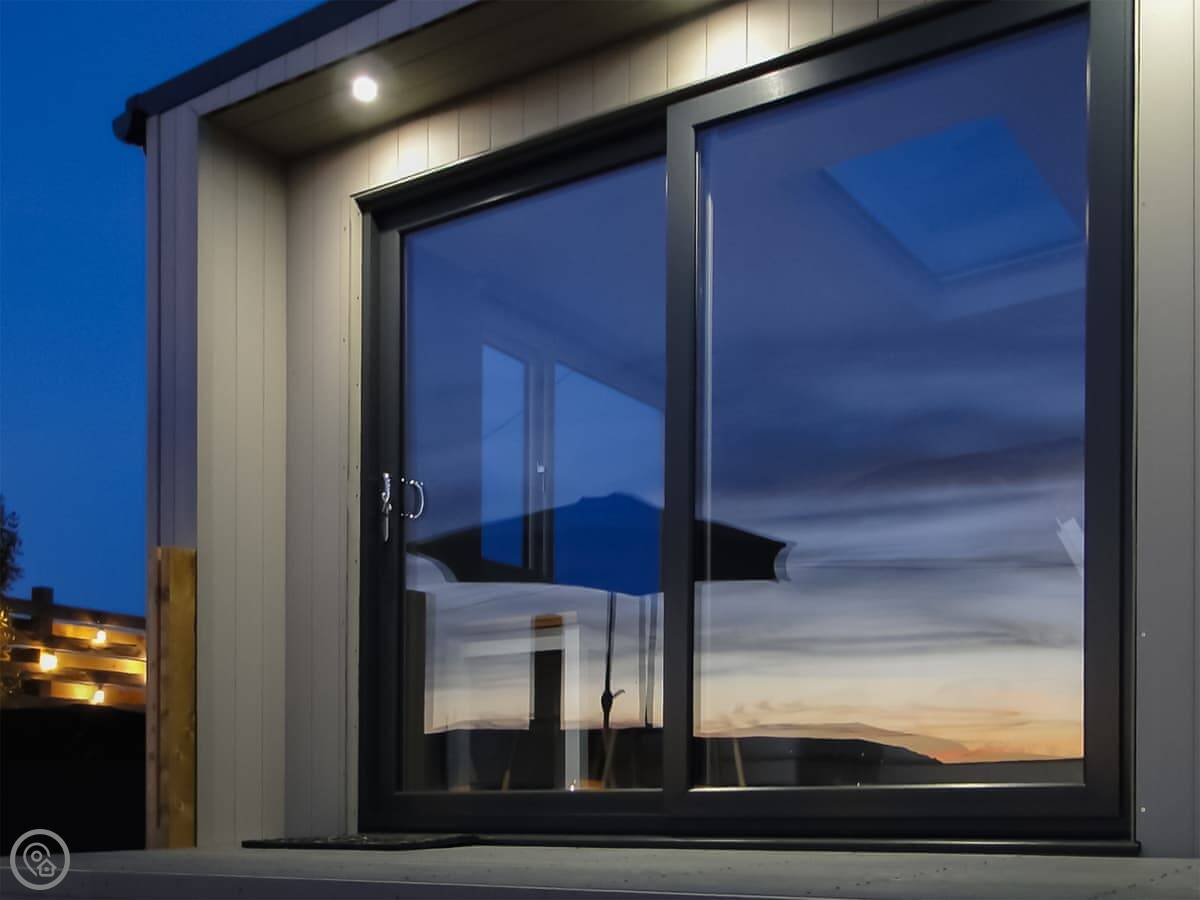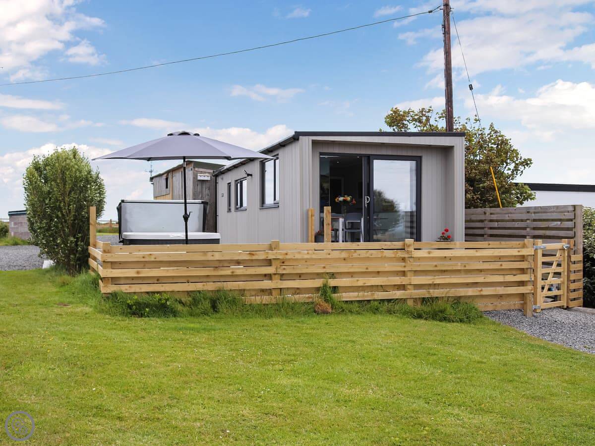 Awel Y Mor is in Penrhosfeilw on Anglesey. It’s a detached micro lodge, so it’s compact. The main thing is the view. It looks right out over the sea. You can see Holyhead Mountain from there.
