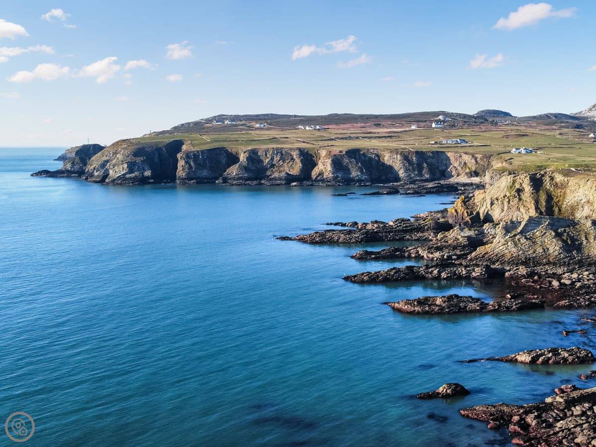 For a beach, Porth Dafarch is about a mile down the road. It’s a sandy cove. Trearddur Bay is a bit further, maybe ten minutes by car. That’s where you’ll find a few pubs, shops, and places to eat.