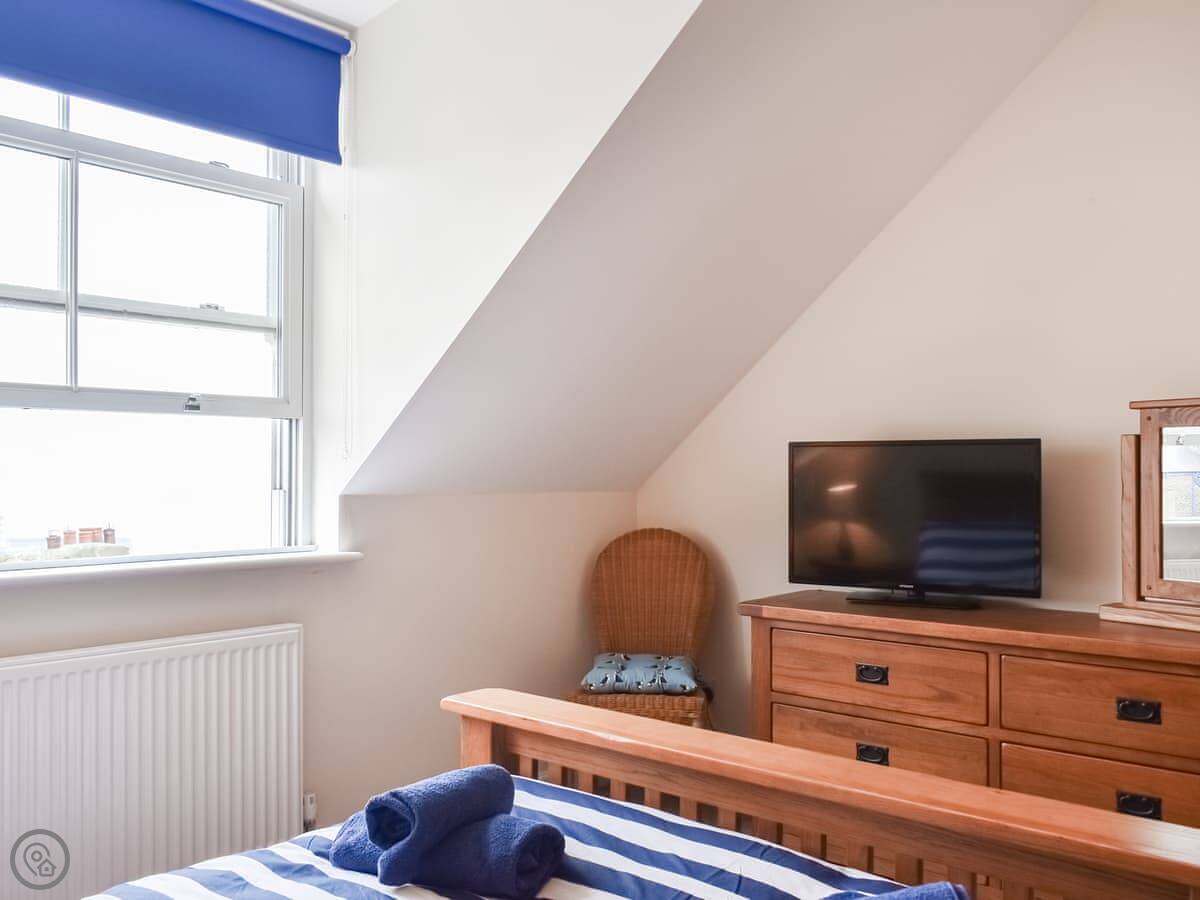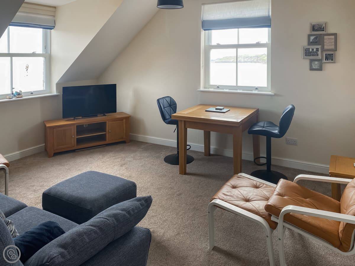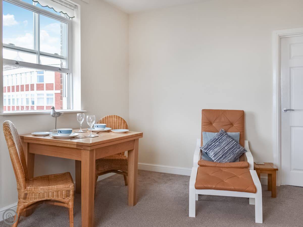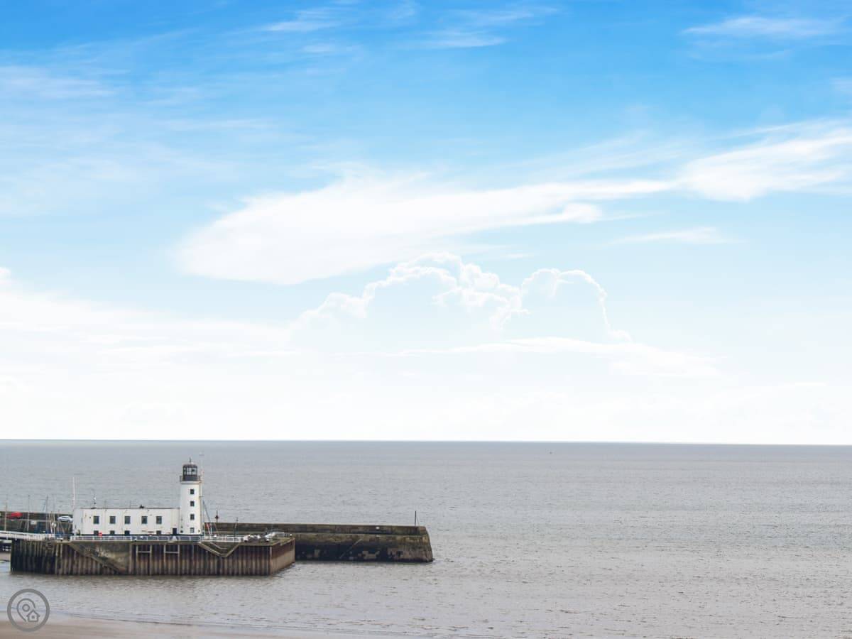 This place is called Top O' The Brewery. It's a penthouse flat in Scarborough, right in the town. You're up high, so the main views are of the sea and the rooftops.