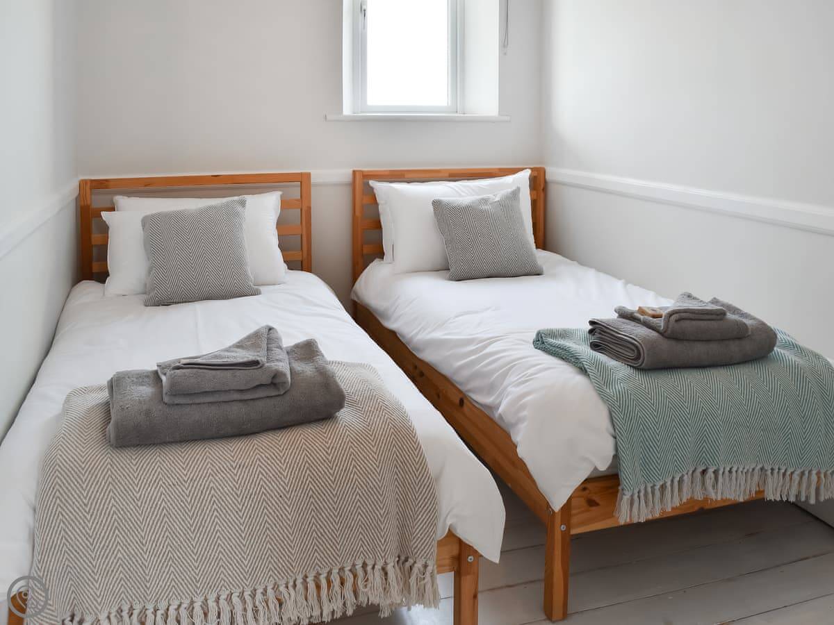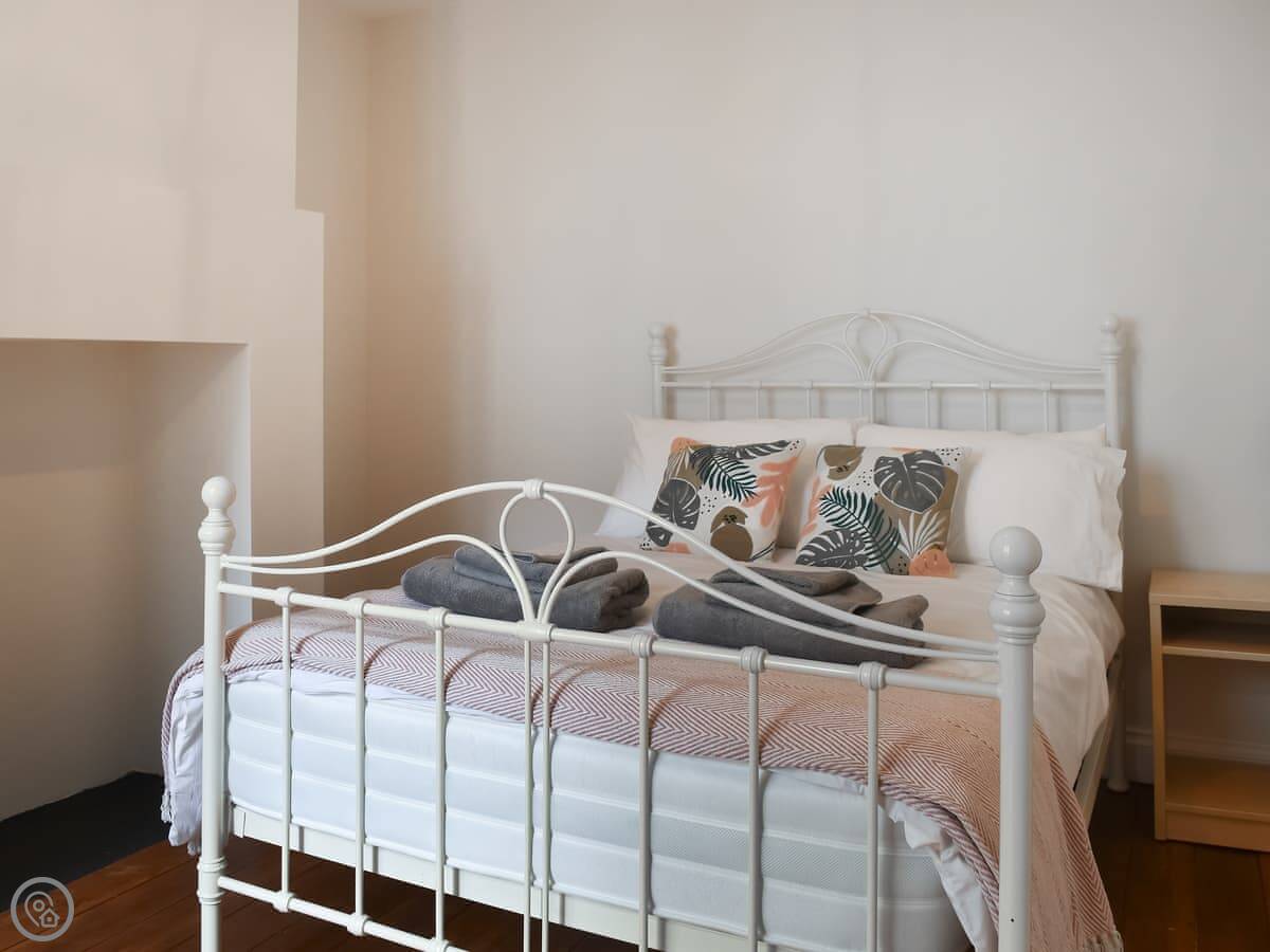 The house has been done up. There are wooden floors, a decent kitchen with a dishwasher, and a washing machine. The wetroom on the lower ground floor is handy for coming in from the beach. The balcony faces the sea. There's also a small courtyard garden at the back.