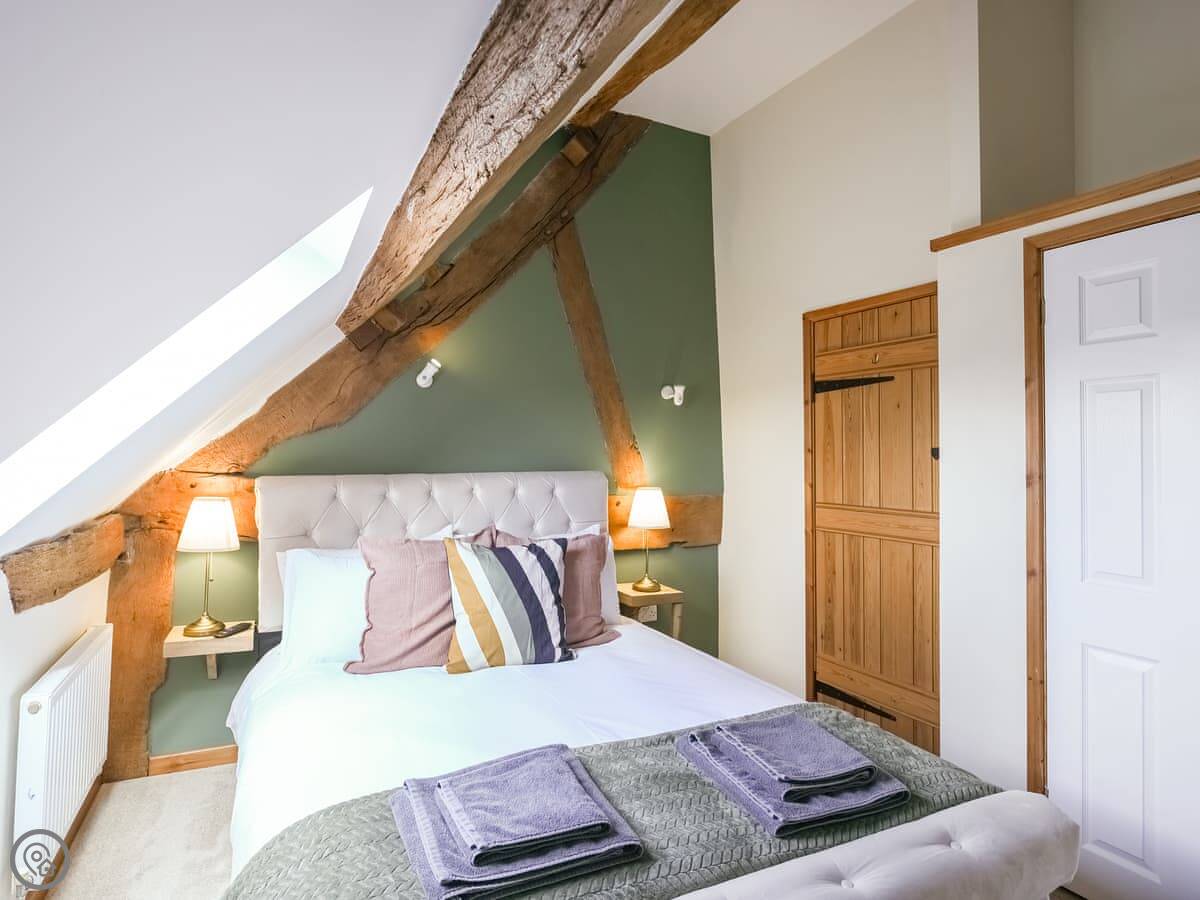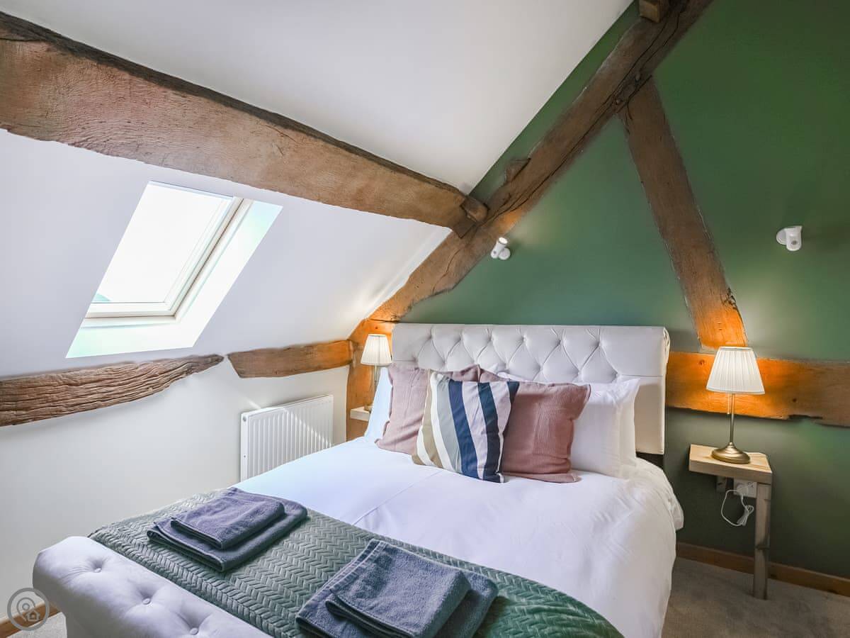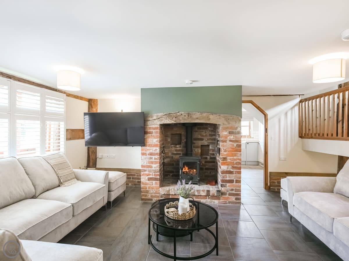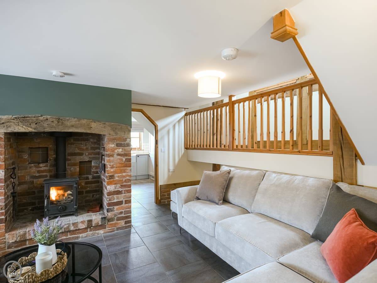 The kitchen has a stone floor and a big breakfast bar with a good view over the fields. The living room has a wood burner. There are beams, which are nice, but mind your head in a couple of places.