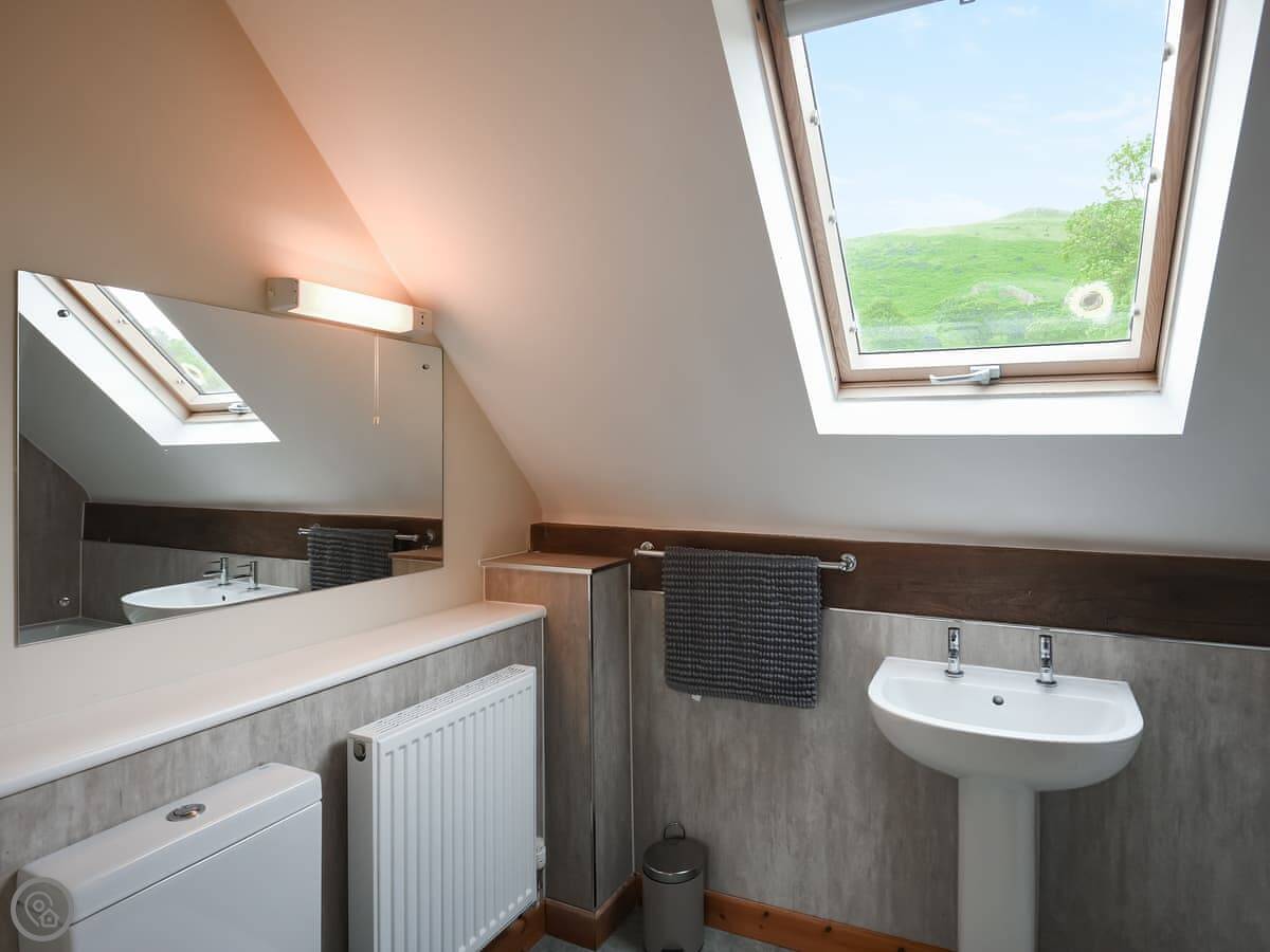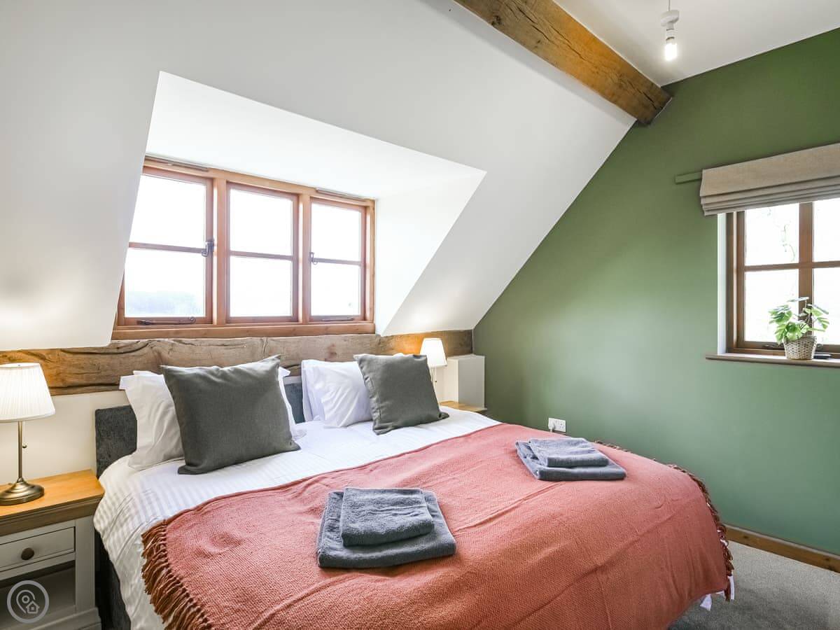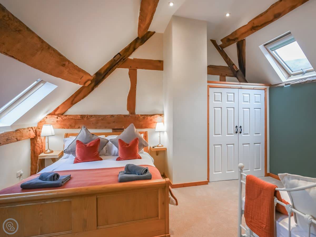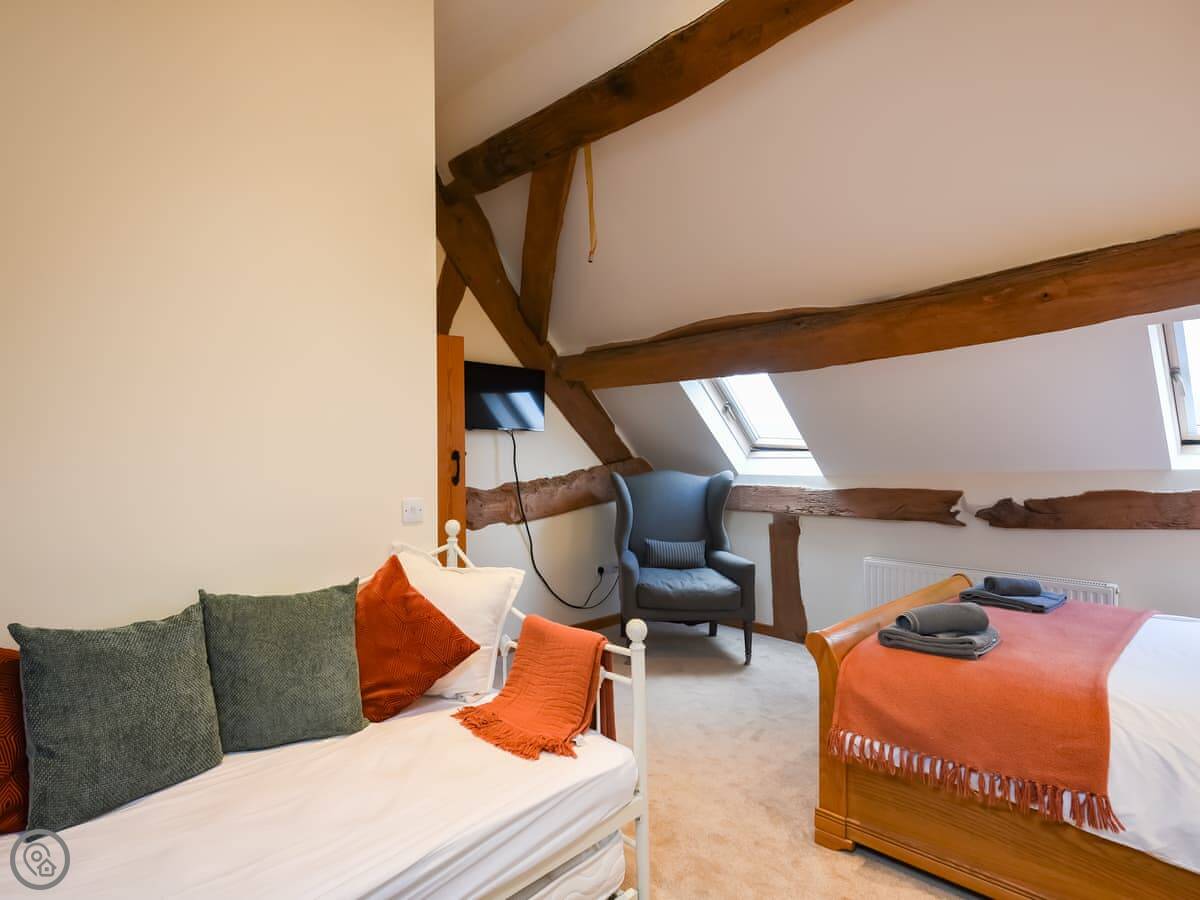 The kitchen has a stone floor and a big breakfast bar with a good view over the fields. The living room has a wood burner. There are beams, which are nice, but mind your head in a couple of places.