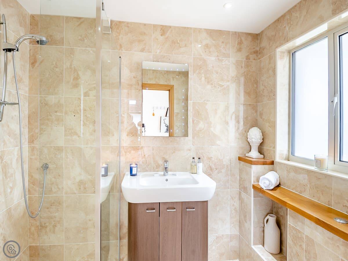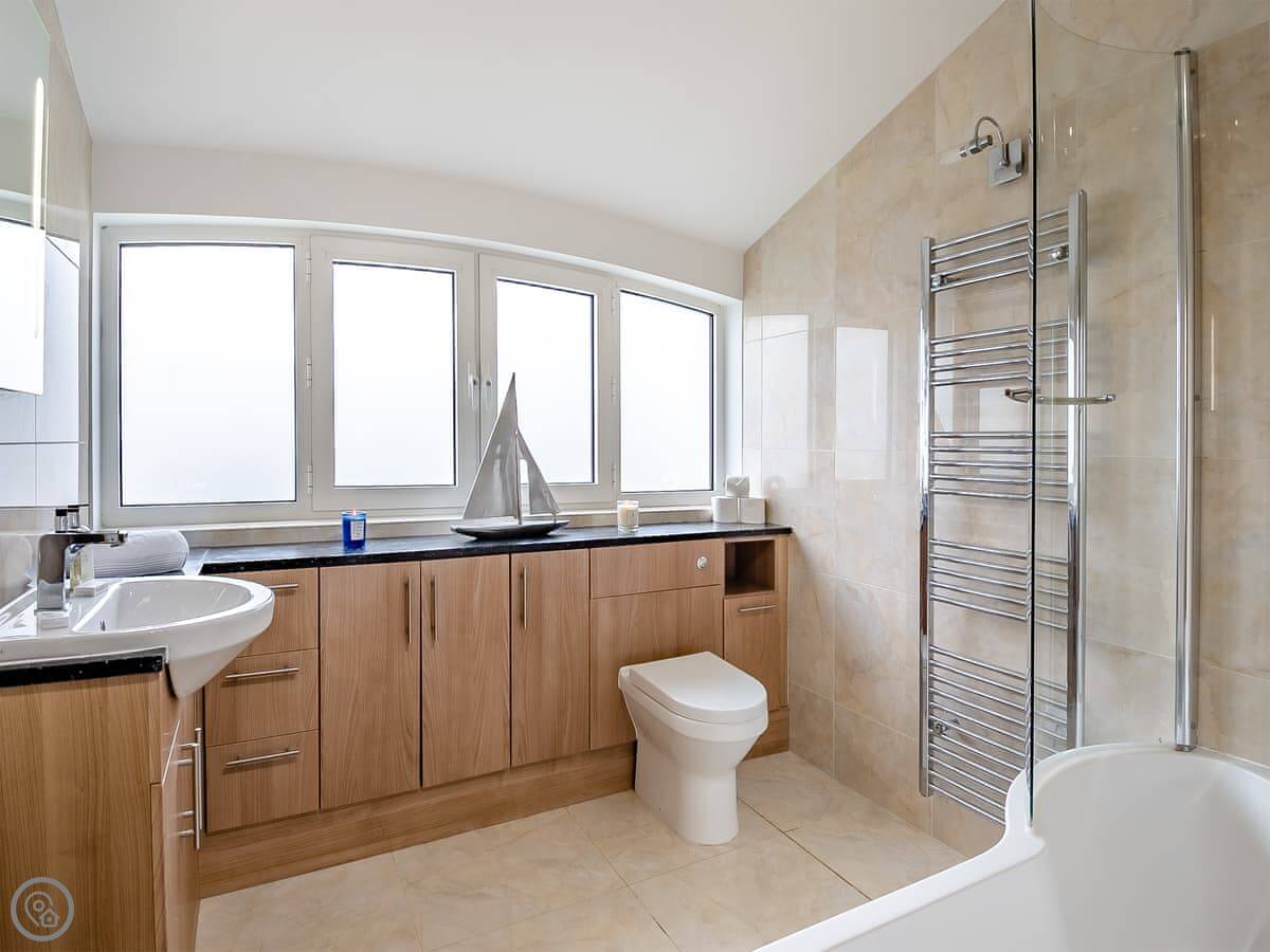 For facilities, it's got the things you'd expect: a dishwasher, washing machine, WiFi, TV. Bedding and towels are included. There's parking for a couple of cars on the drive. The garden has a BBQ. Pets aren't allowed.