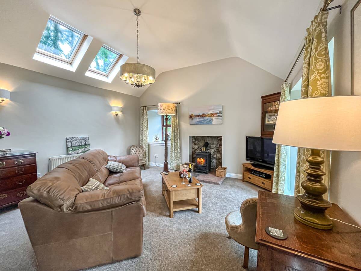 You get a super king bed. The bathroom has a separate shower and a bath. There's a wood burner in the sitting room and French doors out to the garden. The view from the garden is all fields and sky. Good sunrises.