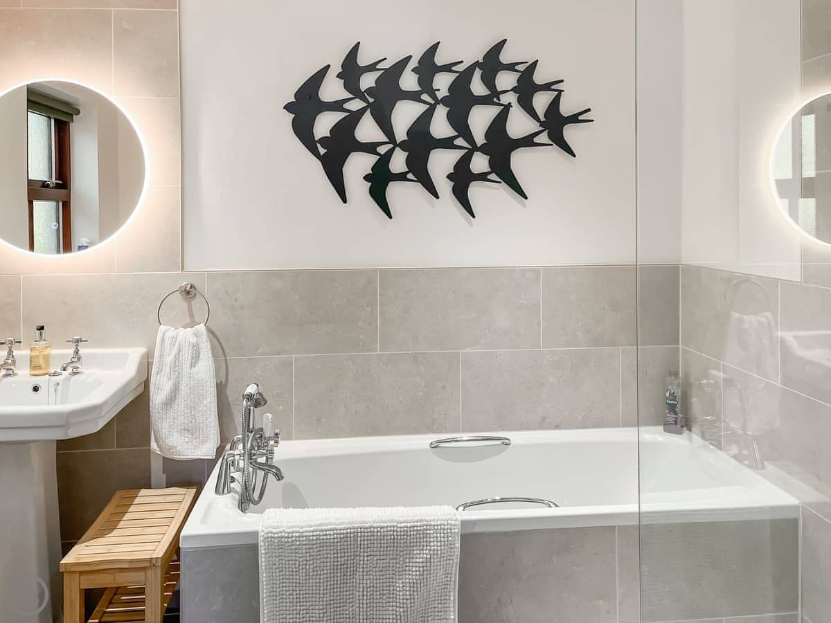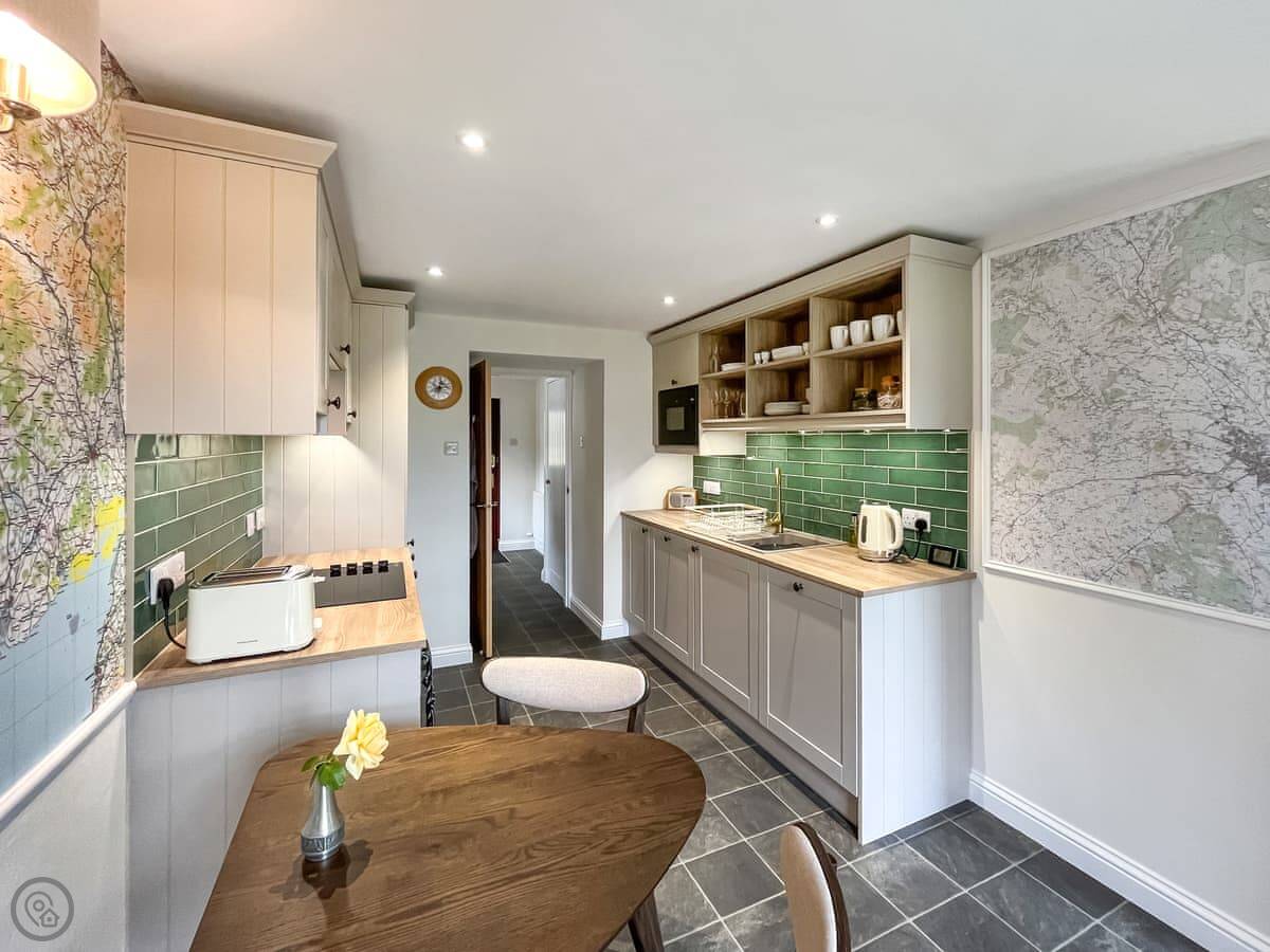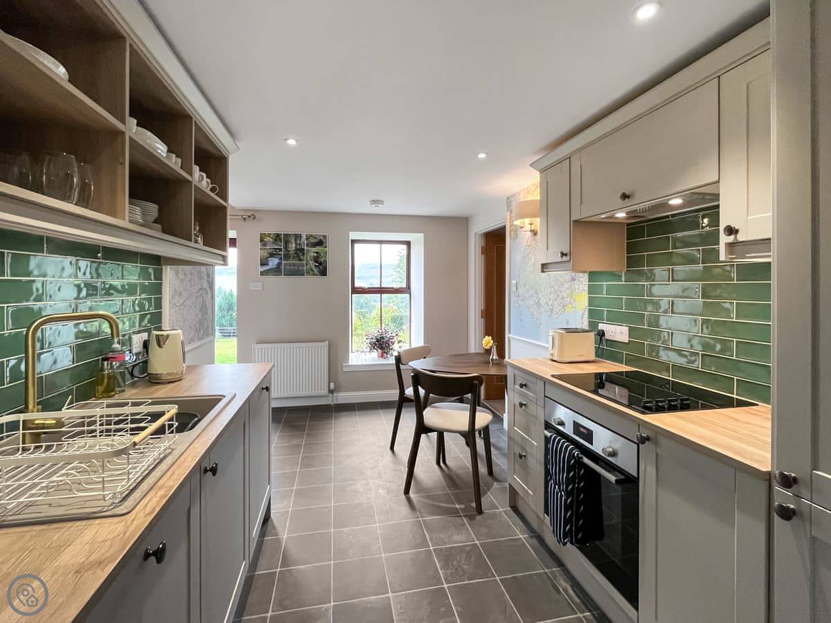 It's got a modern kitchen with a dishwasher, and a utility room for boots and a washing machine. There's bike storage if you need it.