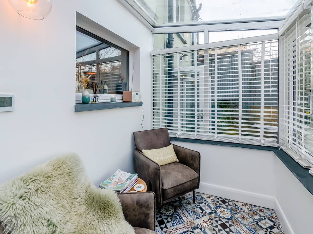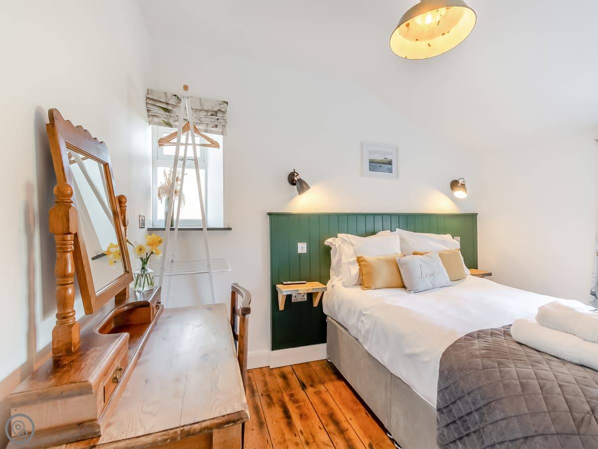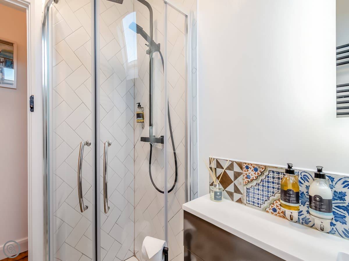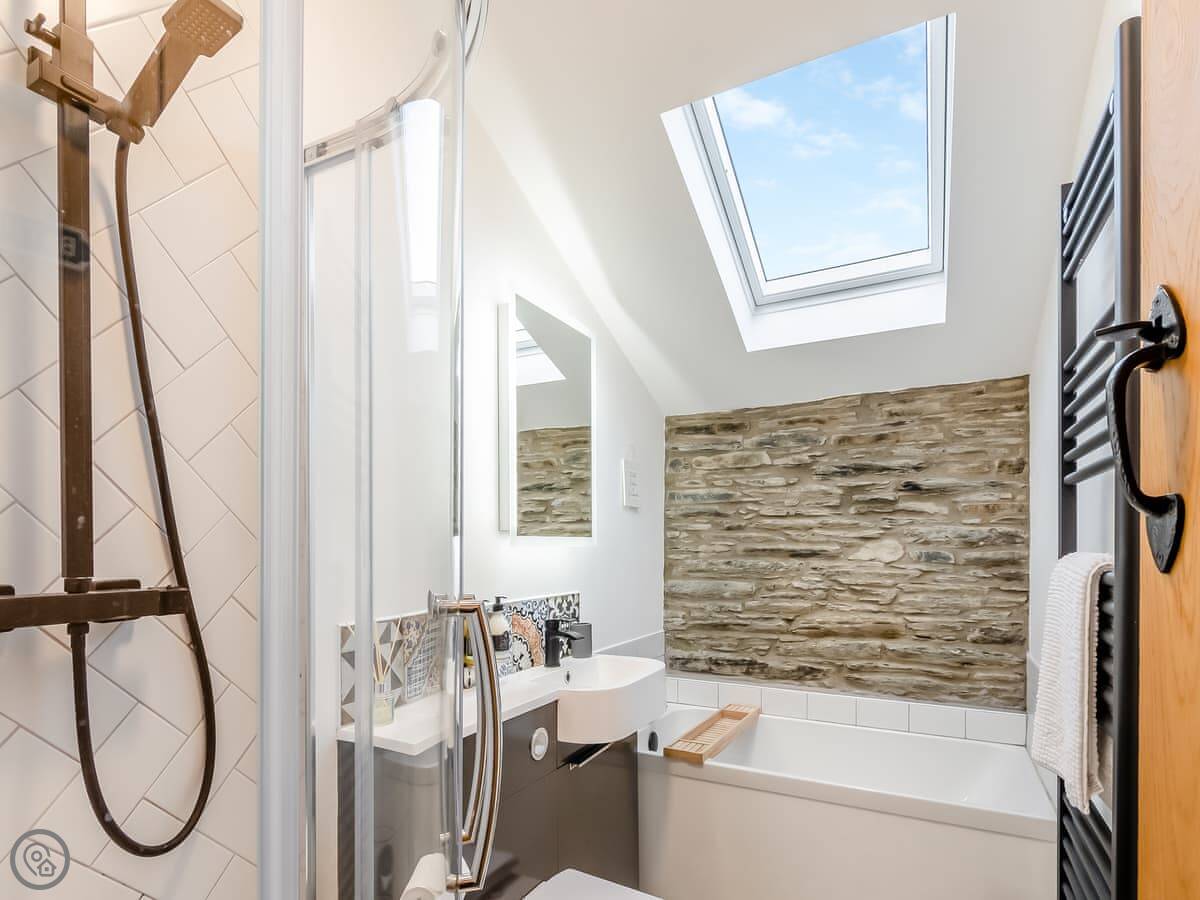It sleeps four. Two bedrooms upstairs, one bathroom with a bath and a shower. It's got a 4 Star rating. It's clean and cosy. The stairs are cottage stairs, so they turn and are a bit steeper towards the top.