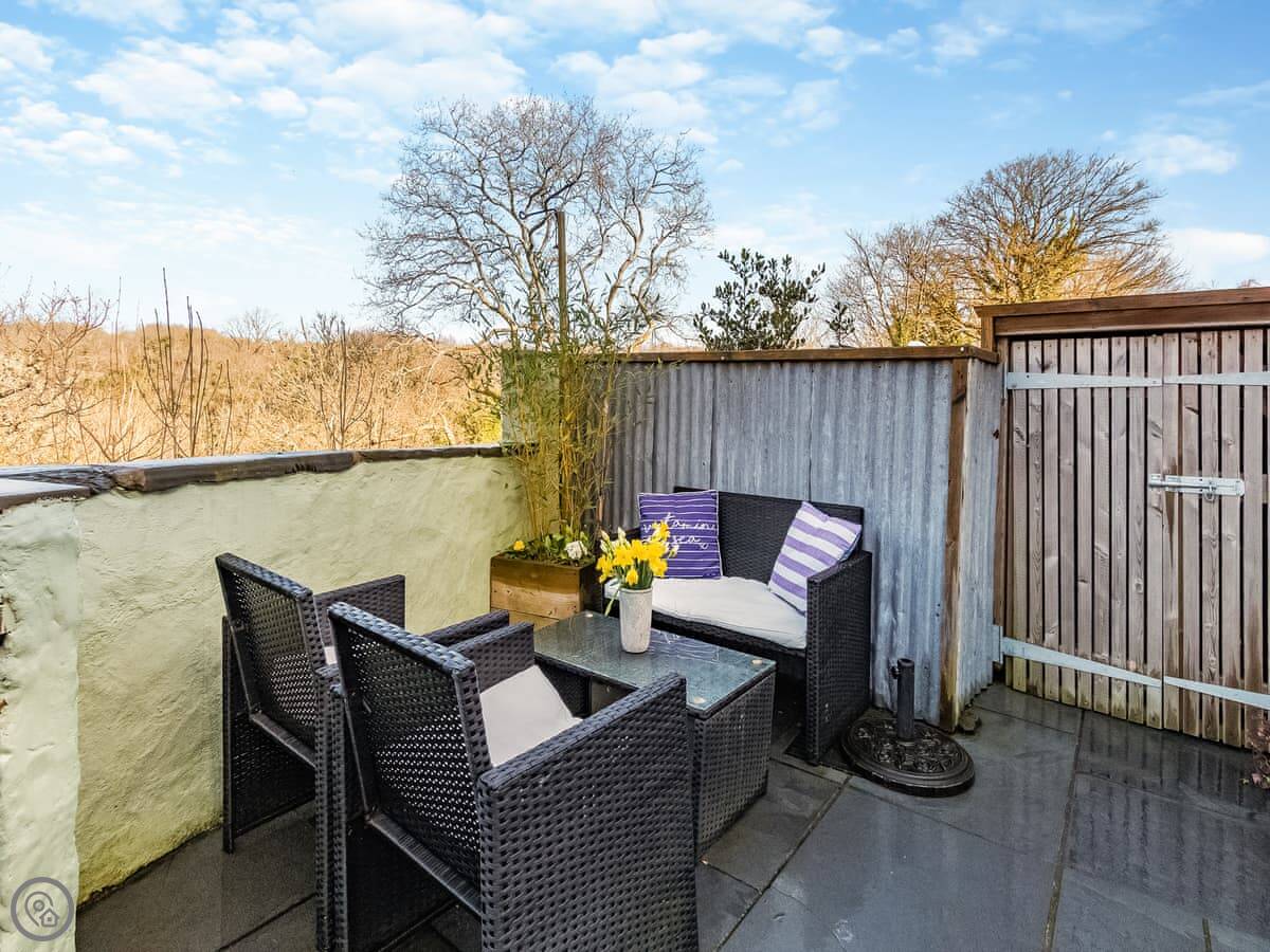 Ty Rhiw is in Cnwcau, near Cilgerran, in Ceredigion. It's a semi-detached stone cottage set back from the lane. The garden is yours to use, with a patio.