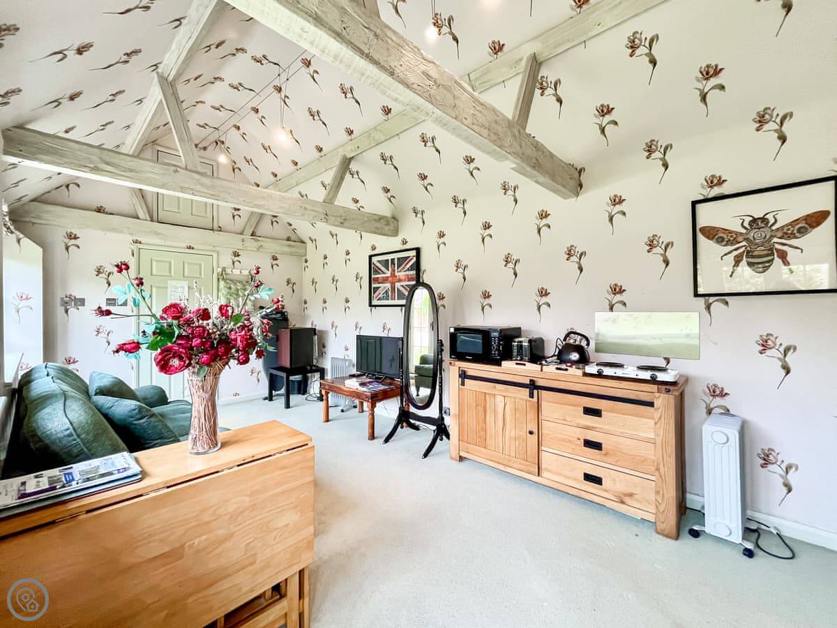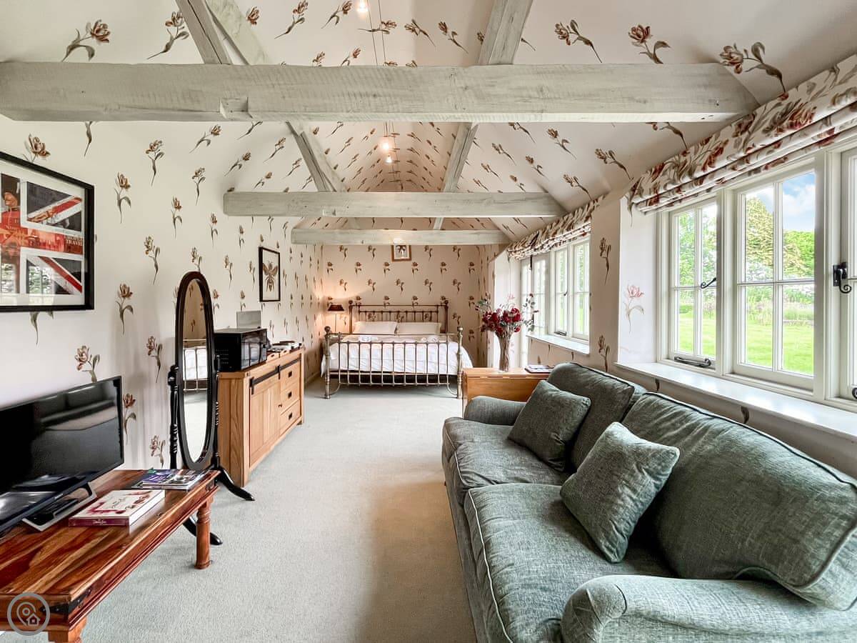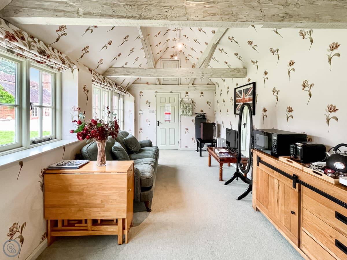 Cottage 3 is on our farm here in East Tytherley. It's a studio, so everything's in one room. There's a kingsize bed, a small kitchen area with a table, and a sofa. There's a separate shower room. It's simple but it's clean and does the job.