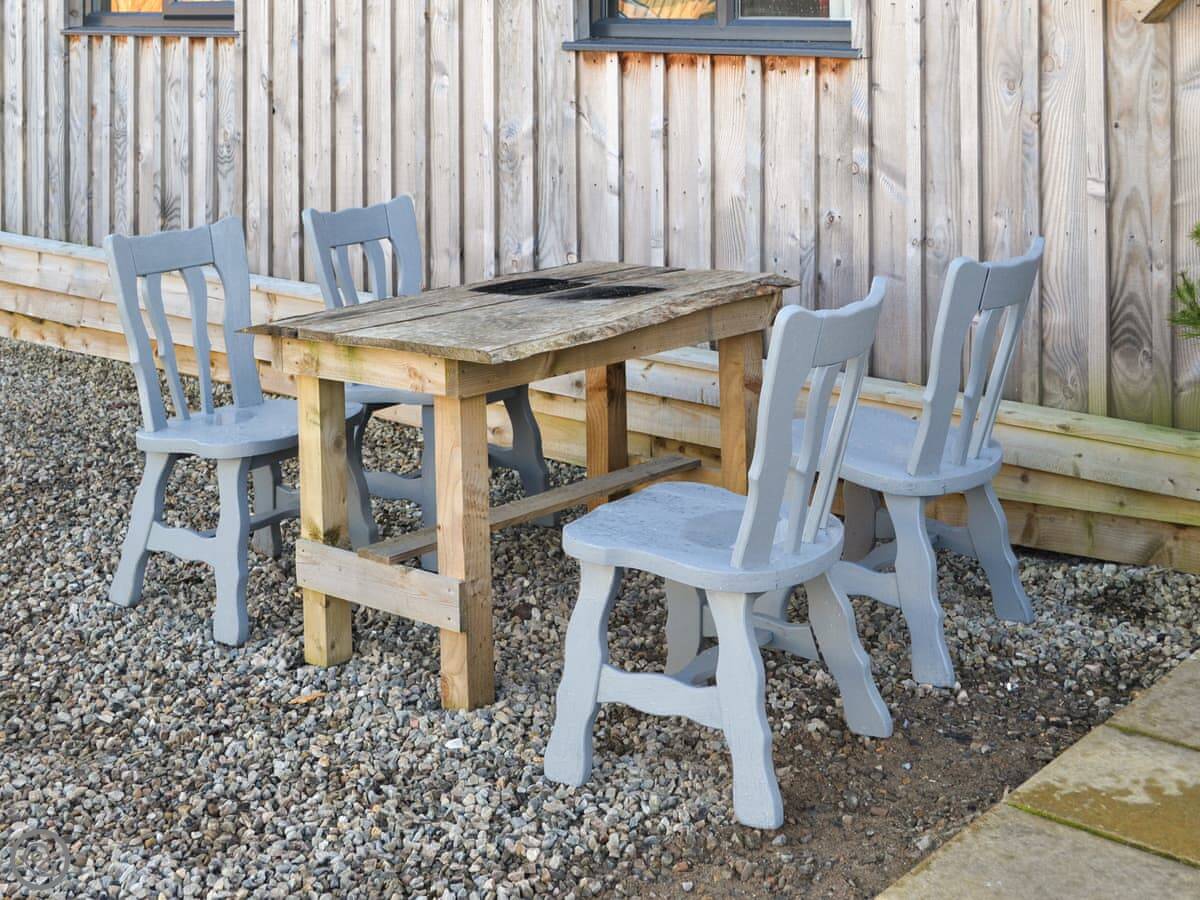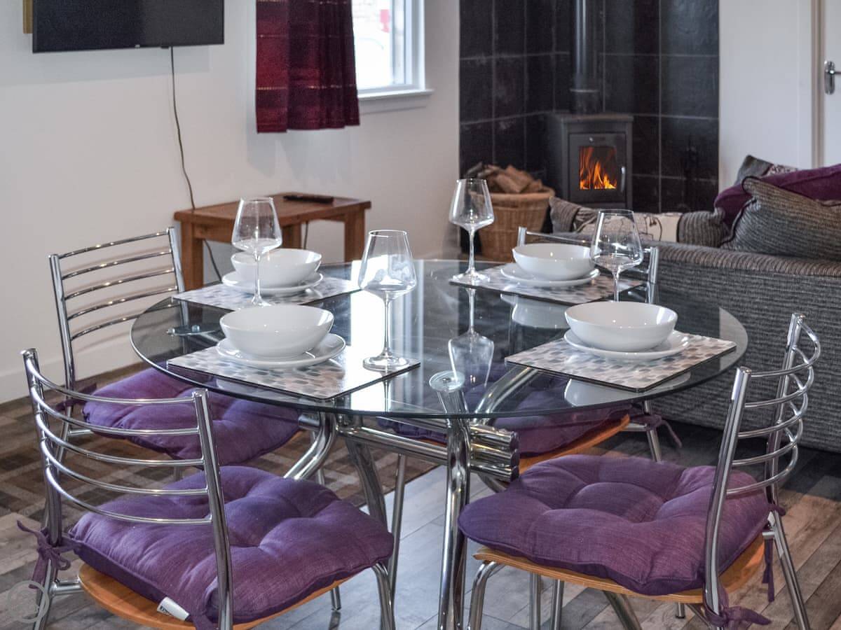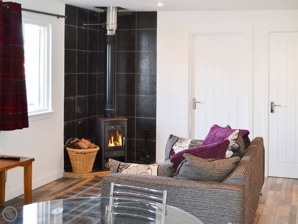 The cottage sleeps six people. There are three bedrooms and two bathrooms. It's a 4 Star property. The main thing is the wood burner, which works well, and there's a patio area outside.