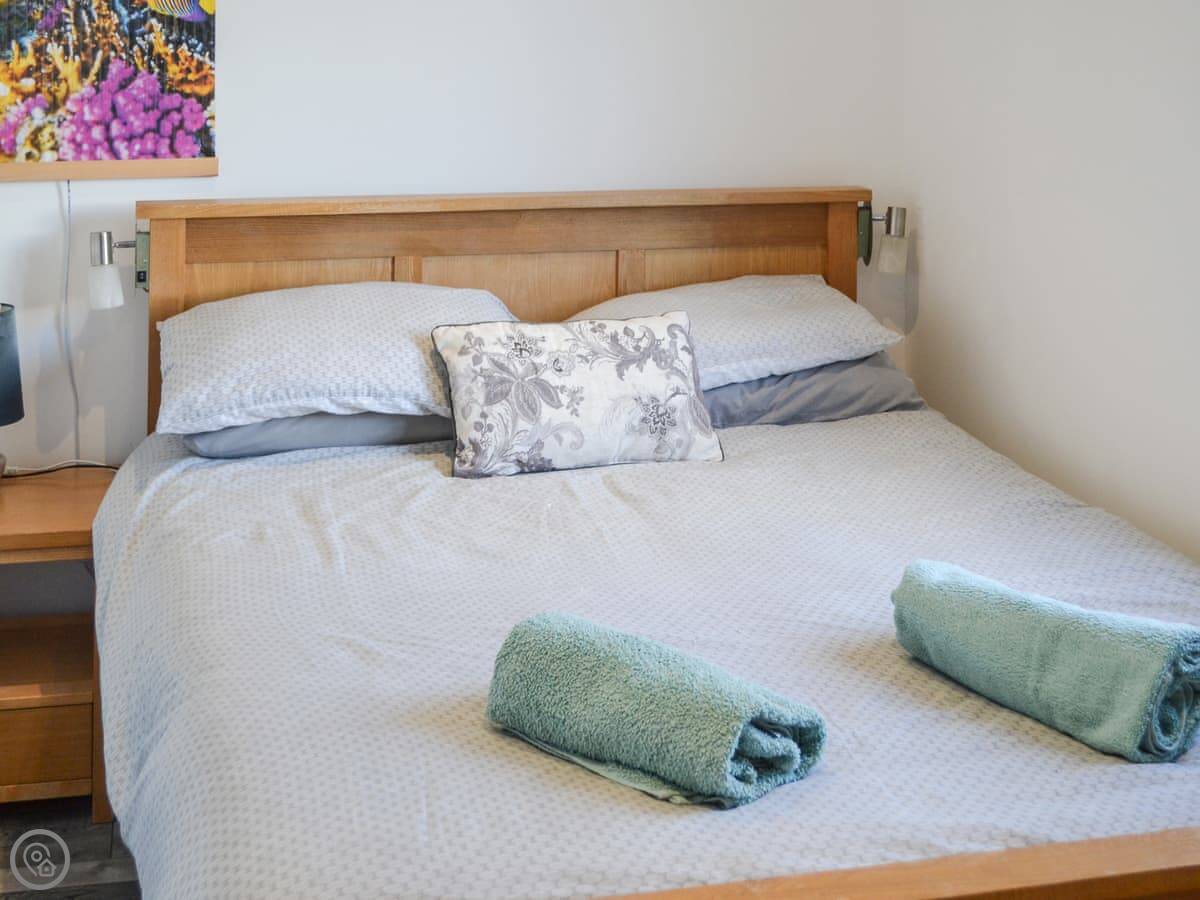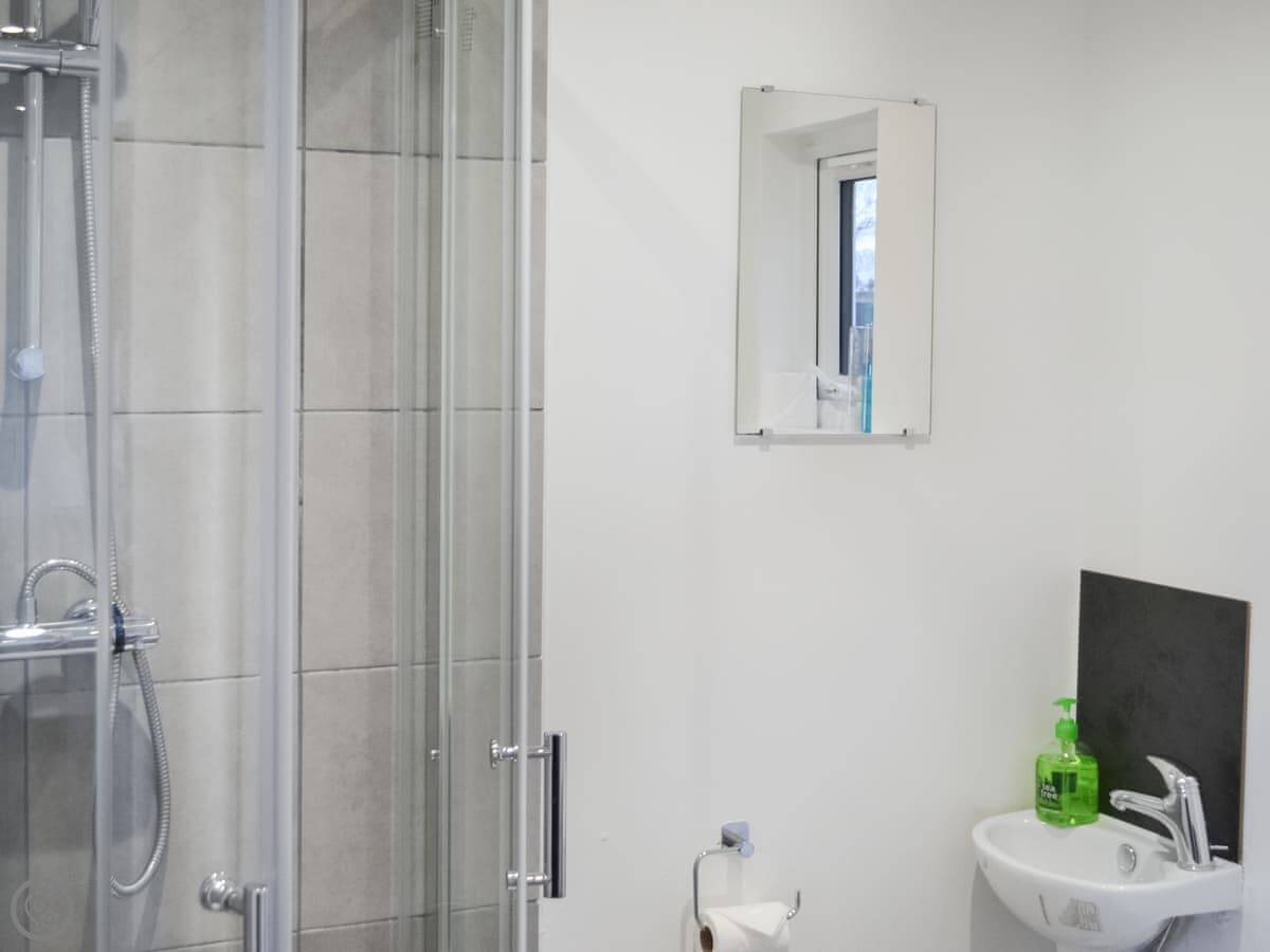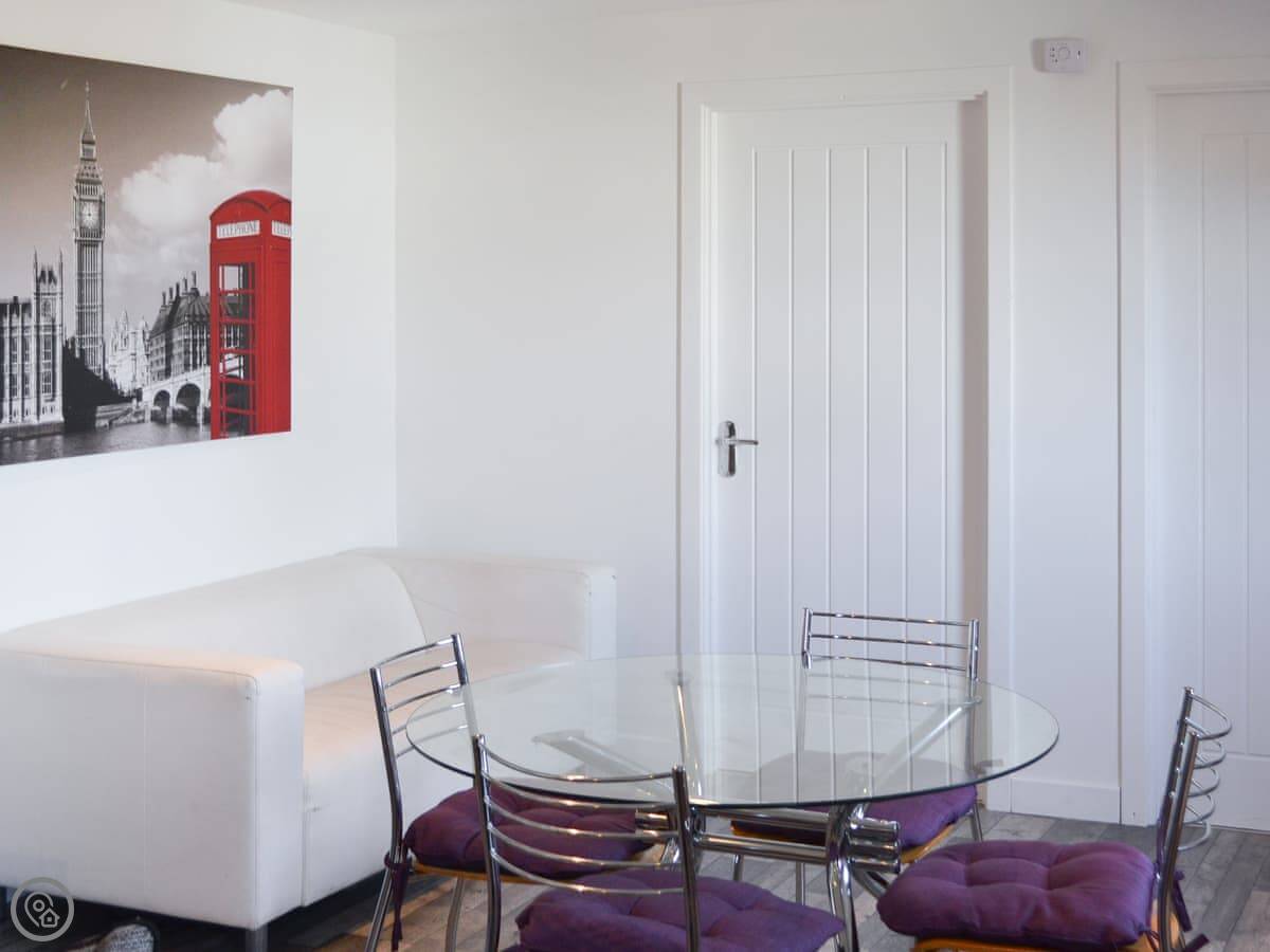 The cottage sleeps six people. There are three bedrooms and two bathrooms. It's a 4 Star property. The main thing is the wood burner, which works well, and there's a patio area outside.