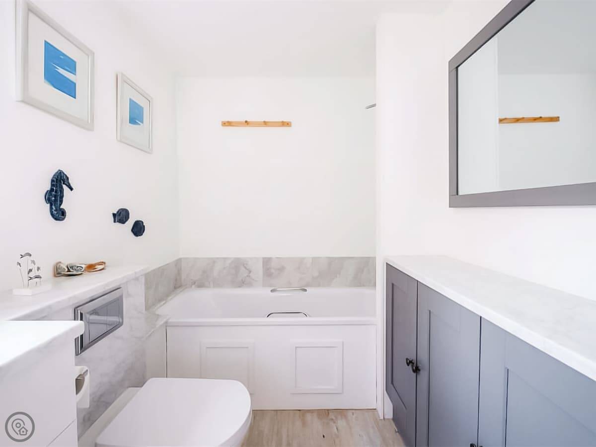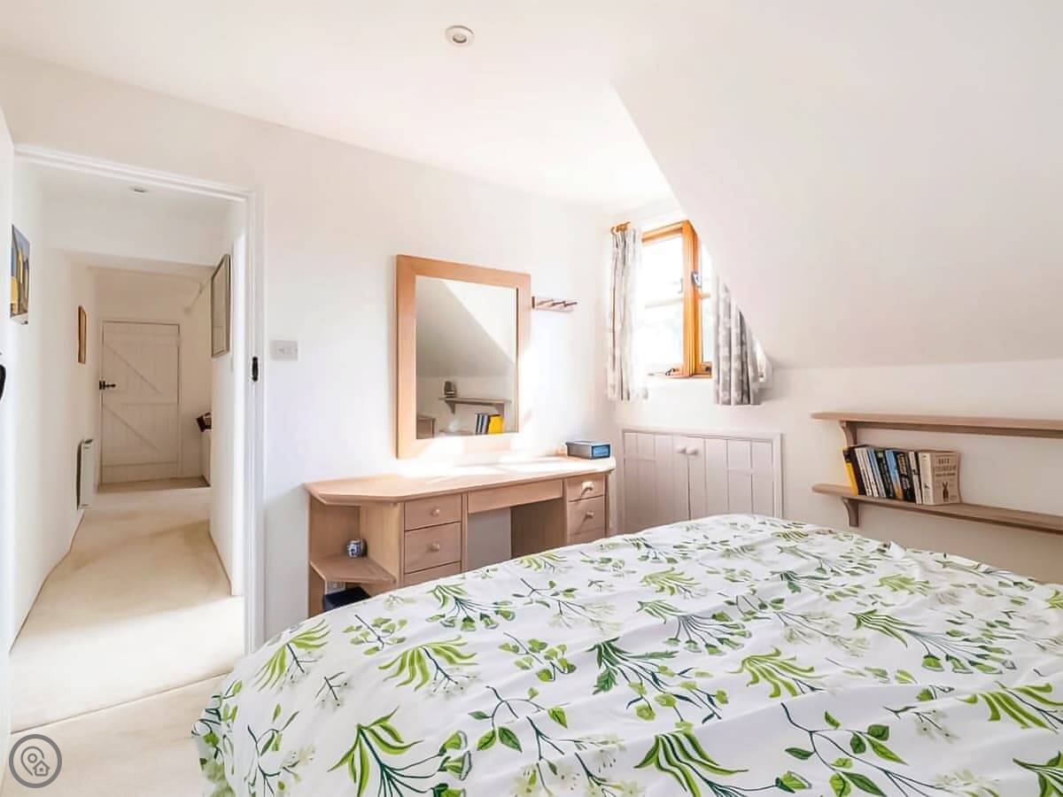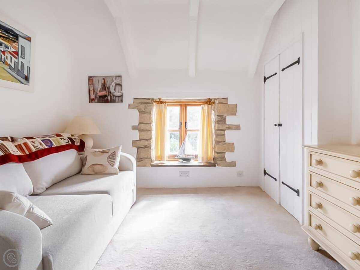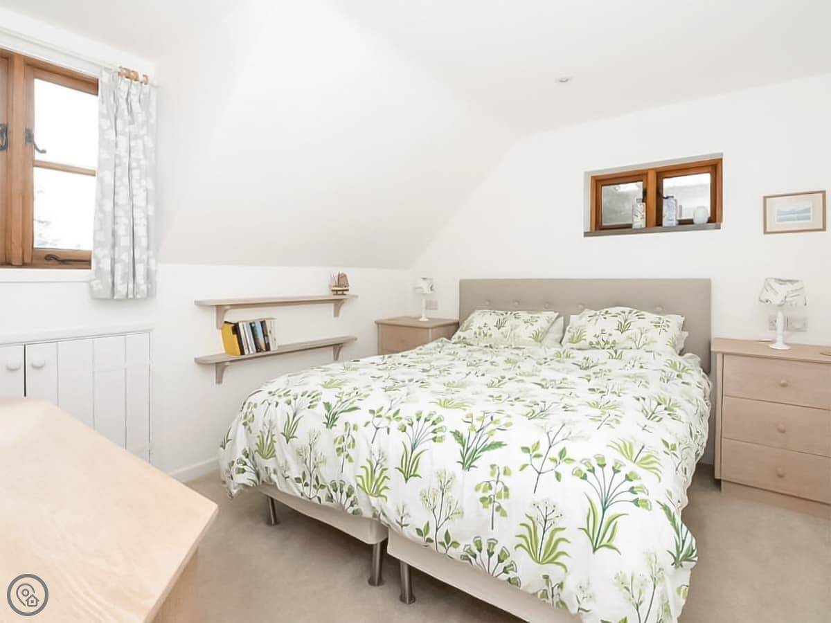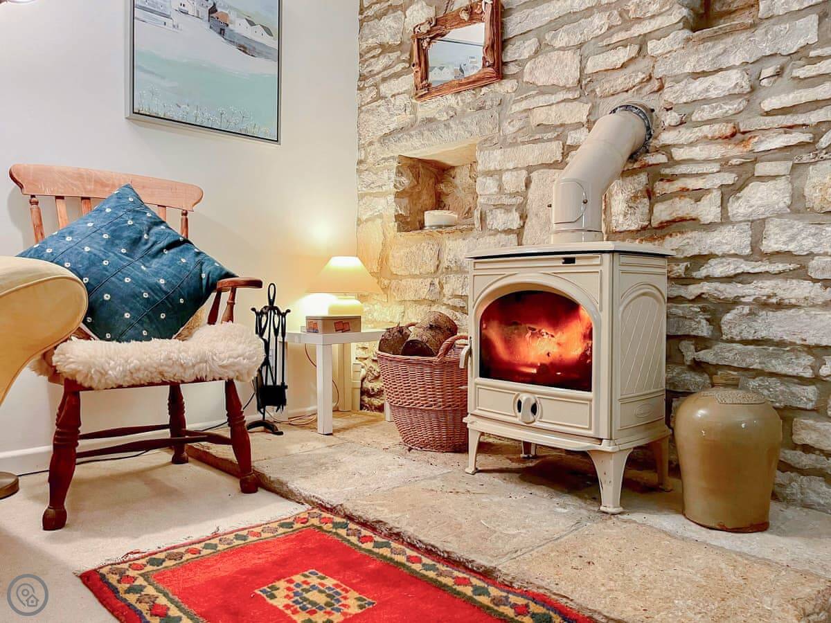 The house sleeps up to four people. Two bedrooms, two bathrooms. It's got a 4 Star rating, which means it's comfortable and well-equipped. The main sitting room has a woodburning stove. There's a second sitting room upstairs, which is a bit of a bonus space. It gets the sun in the morning.