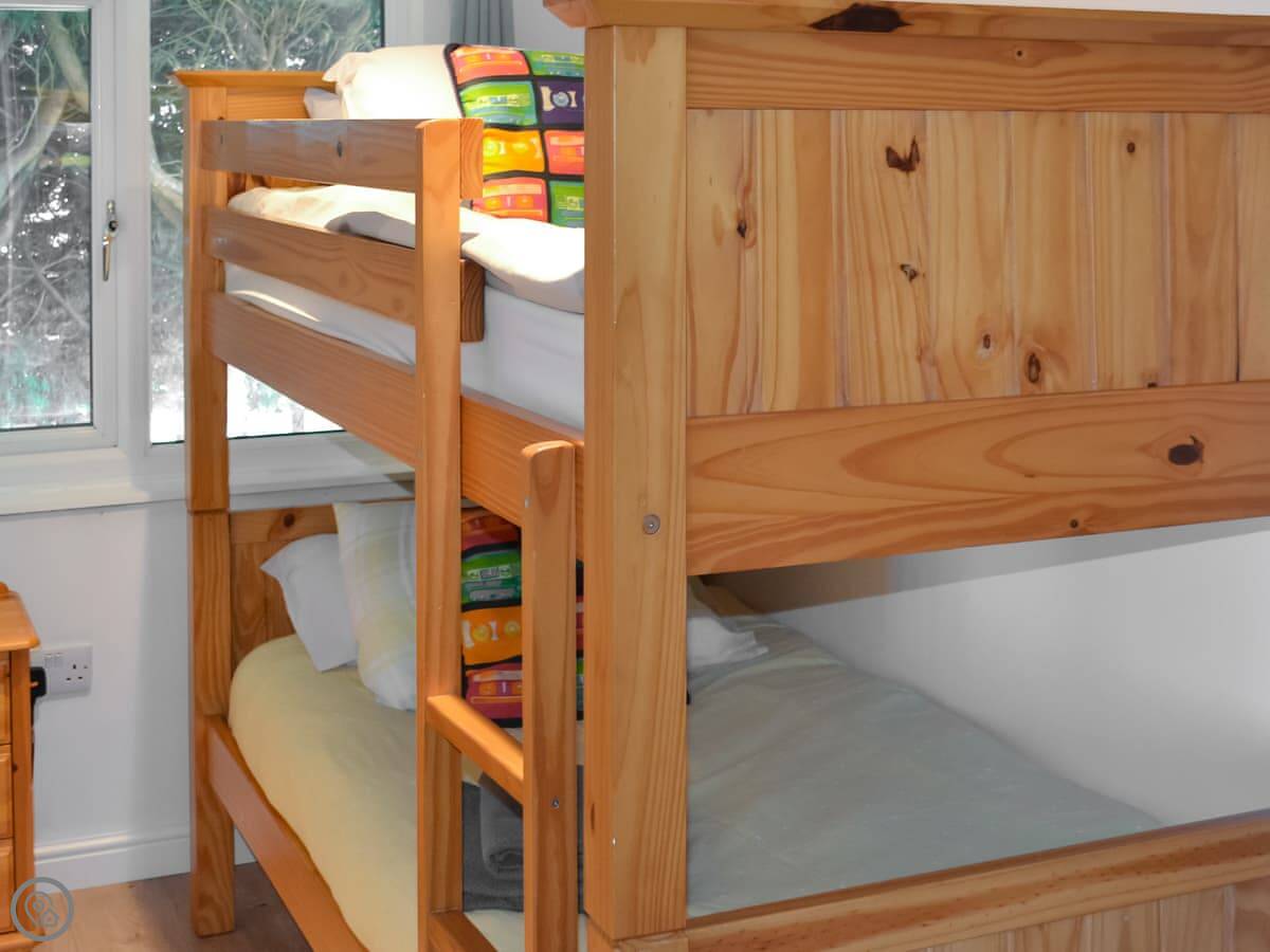 It sleeps six. Three bedrooms, one bathroom with a shower. It’s got a 4 Star rating. It's clean and well looked after, not fancy. It’s open plan downstairs. There’s a wood burner for cooler nights. It works well.