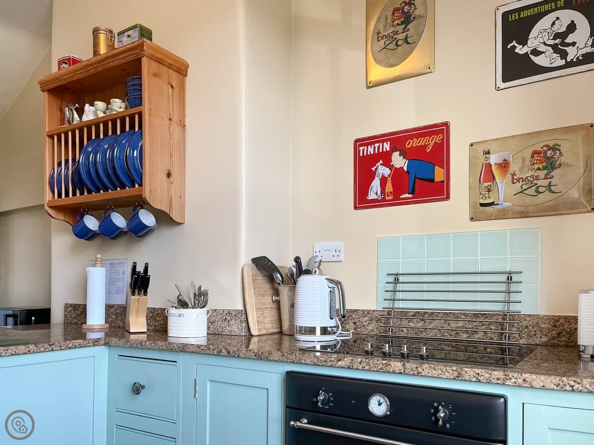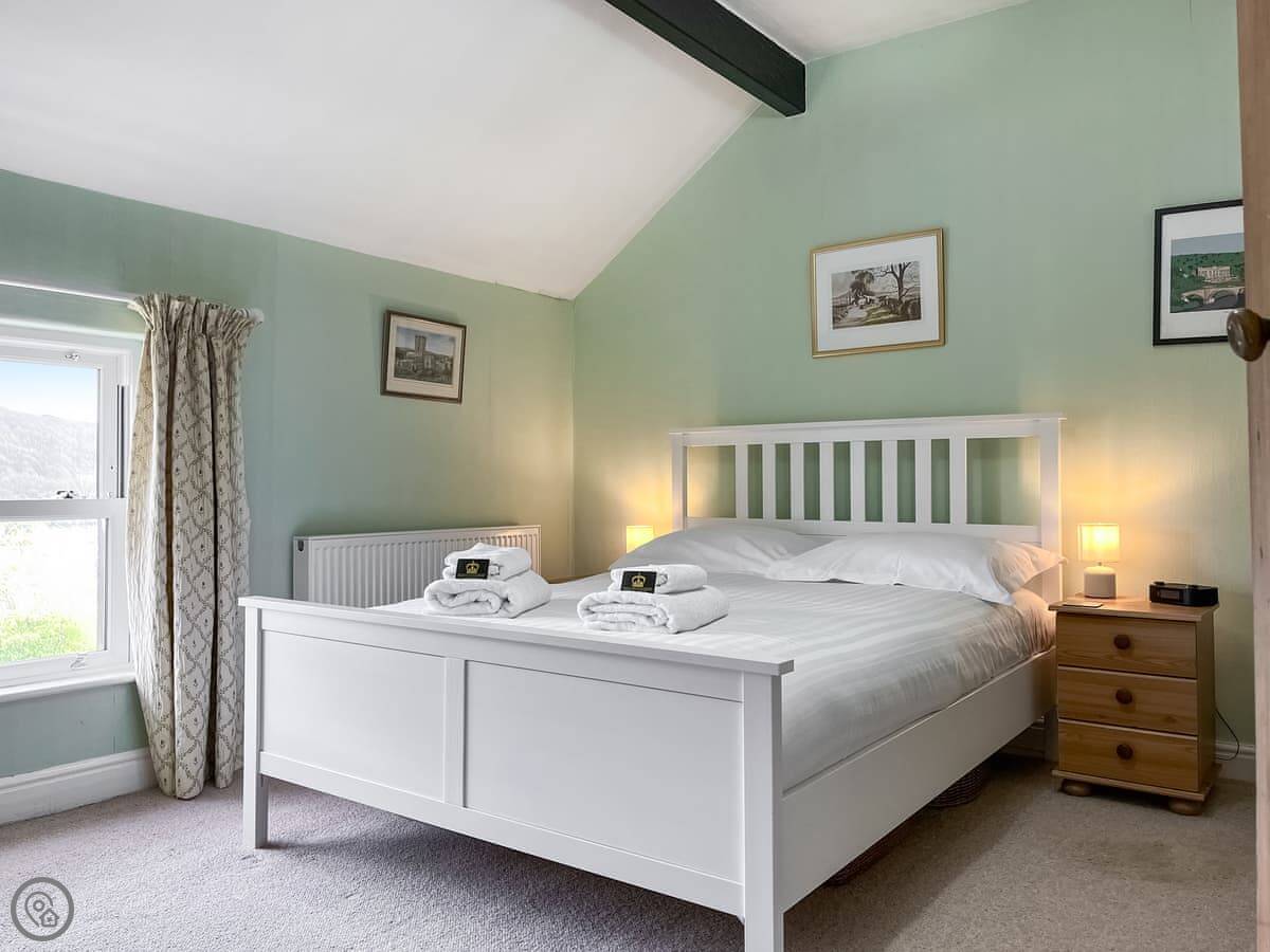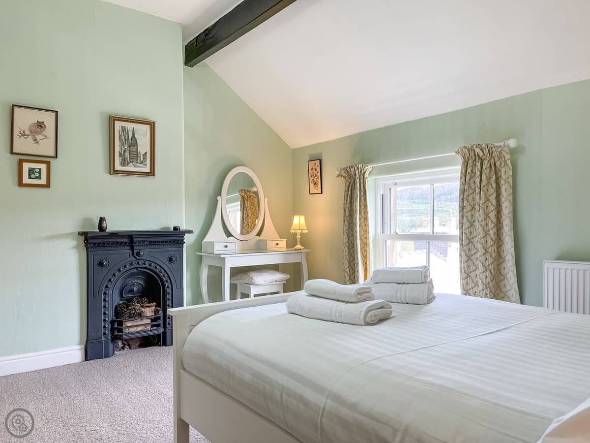 The kitchen window looks out over the fields. You can see them while you're having breakfast. The bed is a super king size.