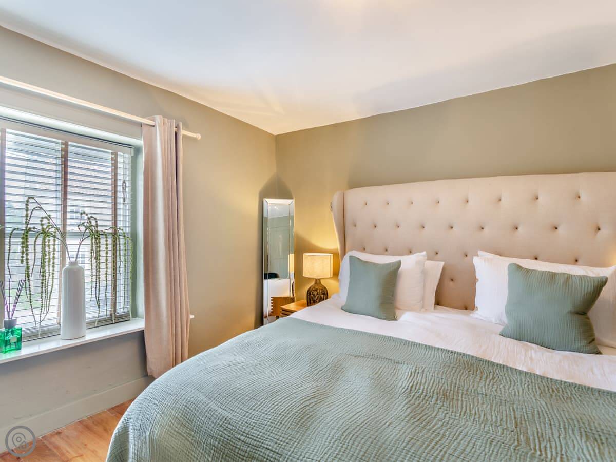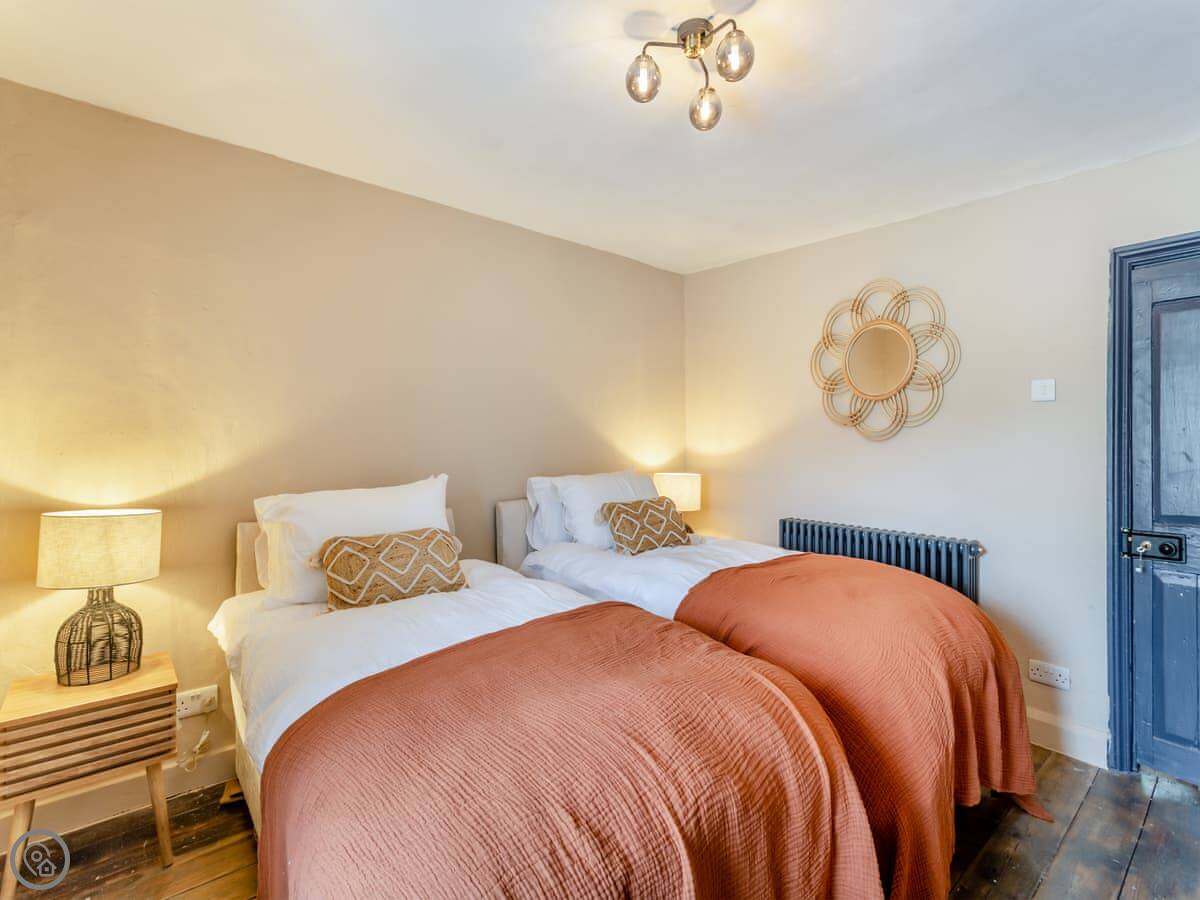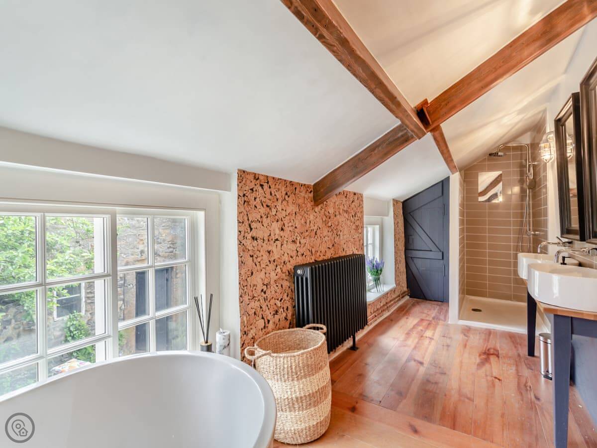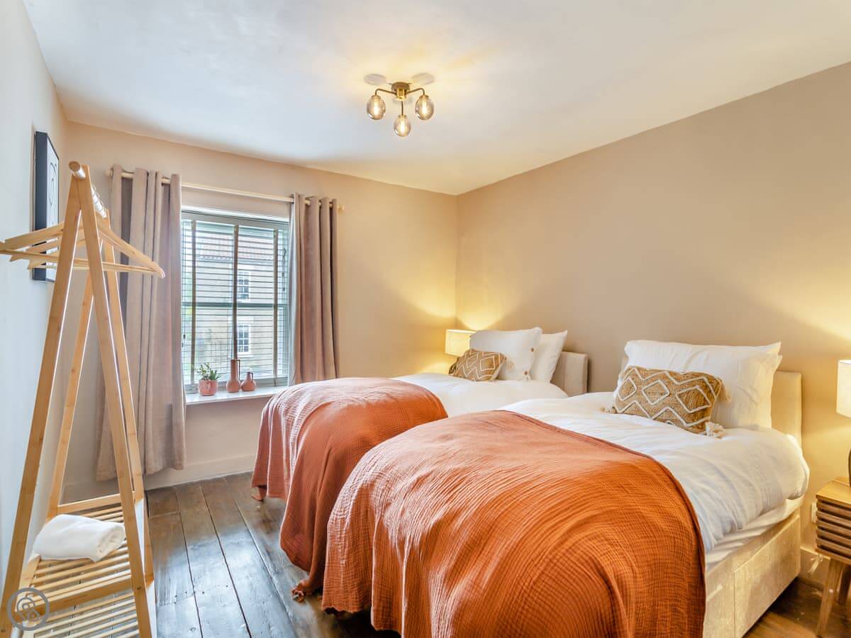 It sleeps four people in two bedrooms. Both rooms have super king-size beds, and one of them can be split into twins if you need it. There's one bathroom with a bath and a separate shower.