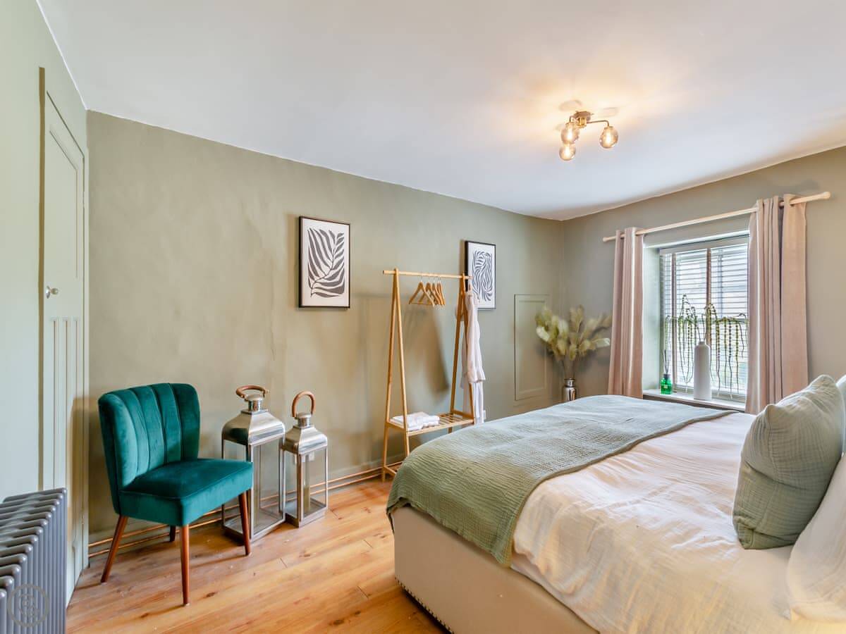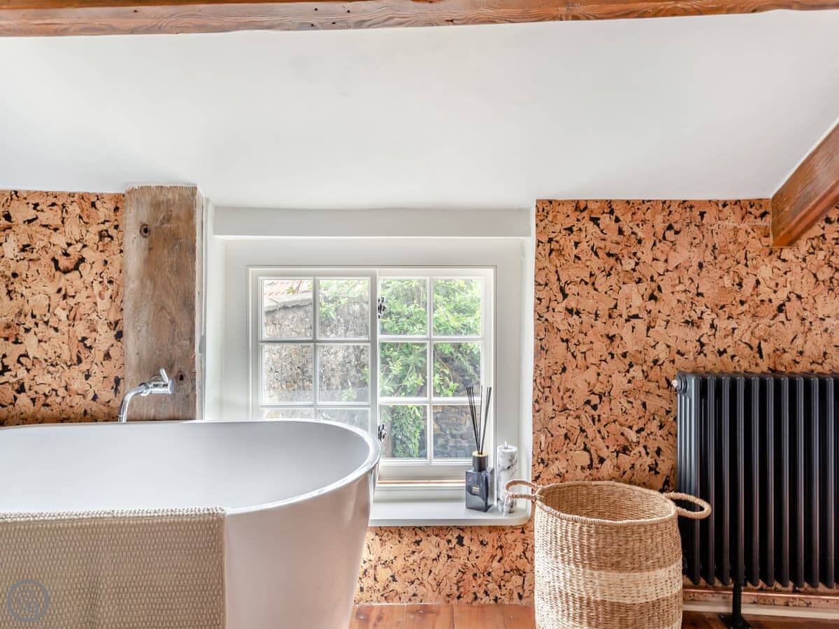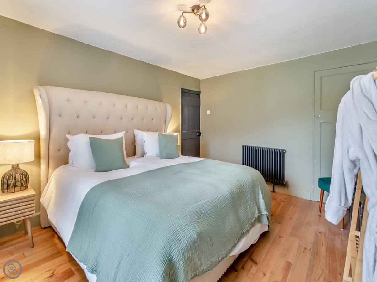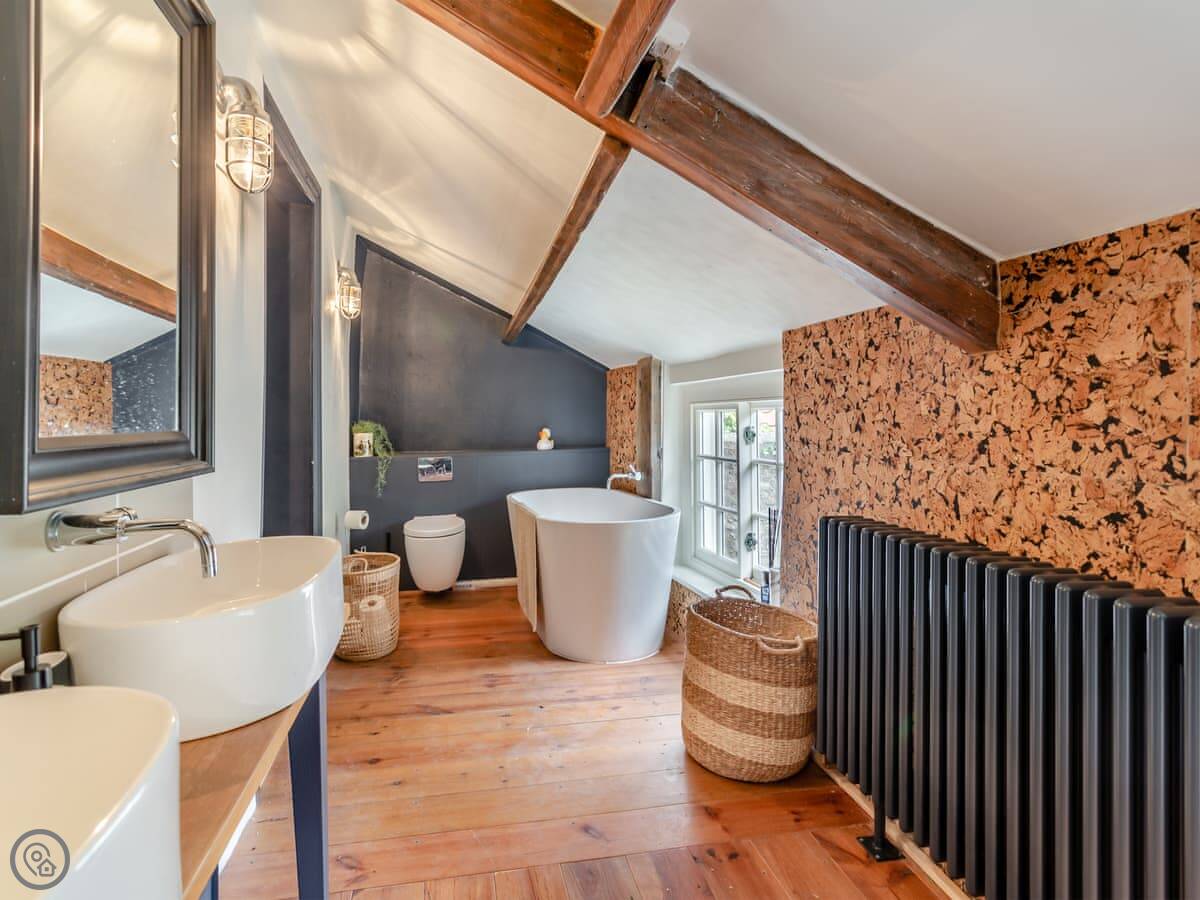 It sleeps four people in two bedrooms. Both rooms have super king-size beds, and one of them can be split into twins if you need it. There's one bathroom with a bath and a separate shower.