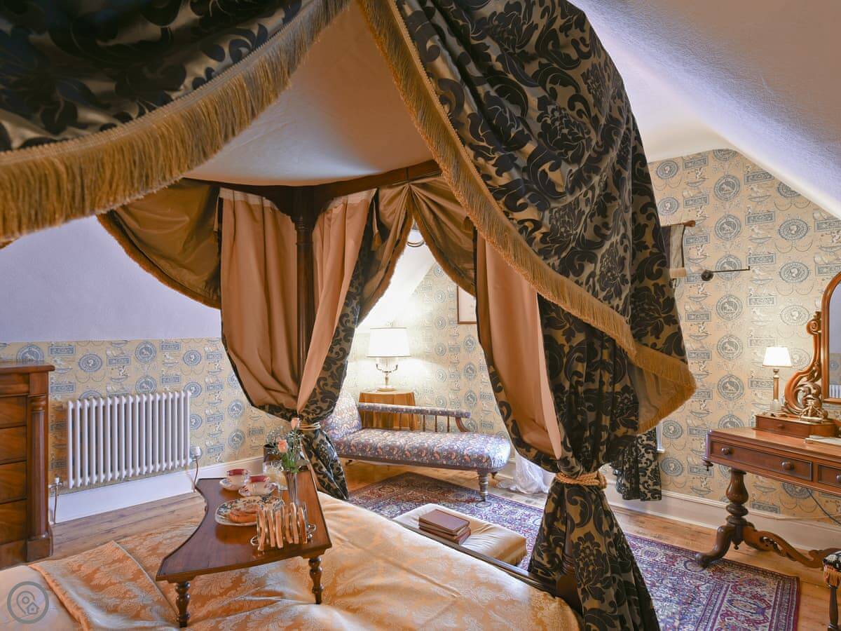 Facilities are what you'd expect: WiFi, TV, washing machine, parking. Bedding and towels are included. One well-behaved dog is allowed. It has a 4 Star rating.