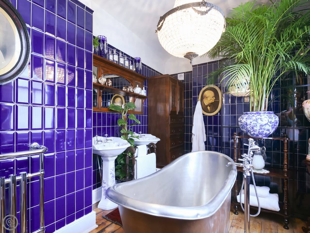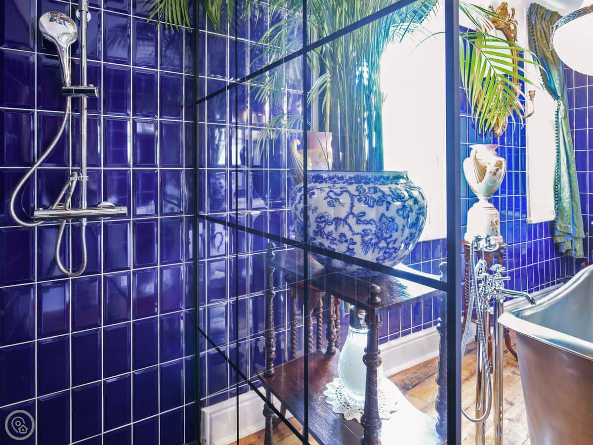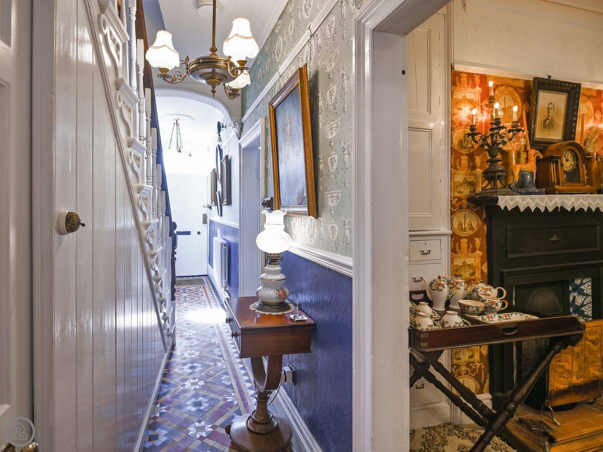 The key thing is it's been restored. They've kept a lot of the original features like the high ceilings, fireplaces and sash windows. The entrance hall is quite something, with the old tiled floor. The bathroom on the first floor is big, with a large shower and a copper bath.